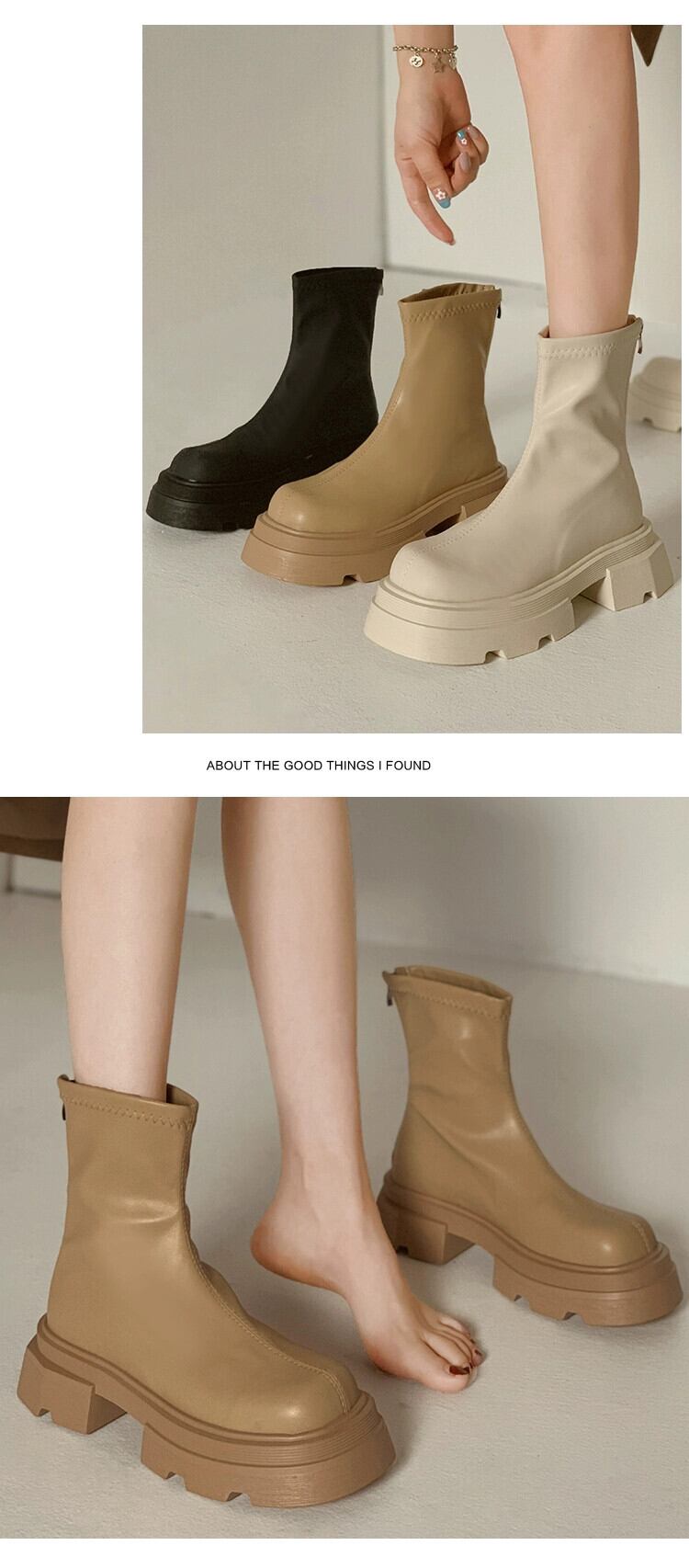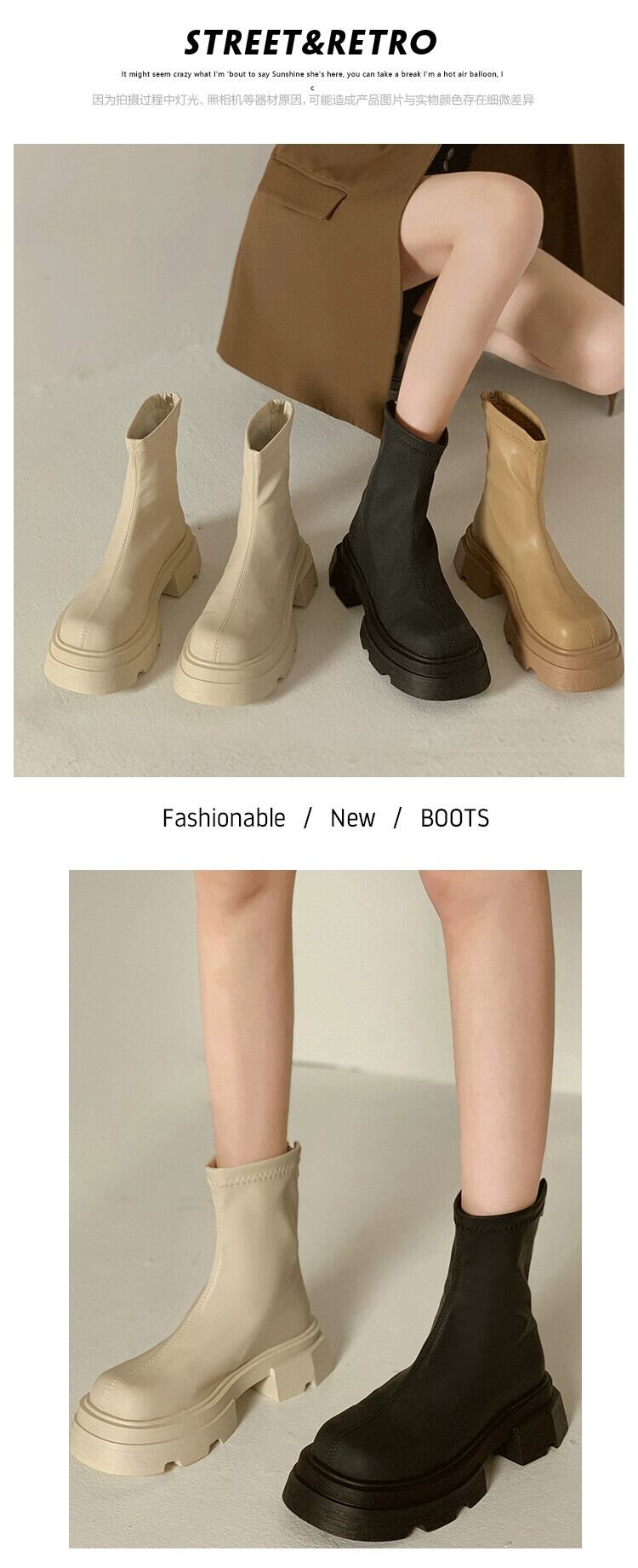 Jia Bujia ショートブーツ女性 2023 夏の新ファッション多用途ストリートフレンドリーなレトロ厚底スリムブーツトレンディな 靴 シューズ サマー 夏物 jxjxf13153371733