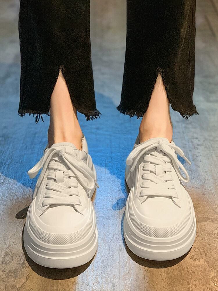 Jia Bujia 厚底白靴の女性 2023 夏スタイルシンプルな西洋スタイルの学生多用途靴 シューズ ホワイト サマー 夏物 jxjxf88195333427