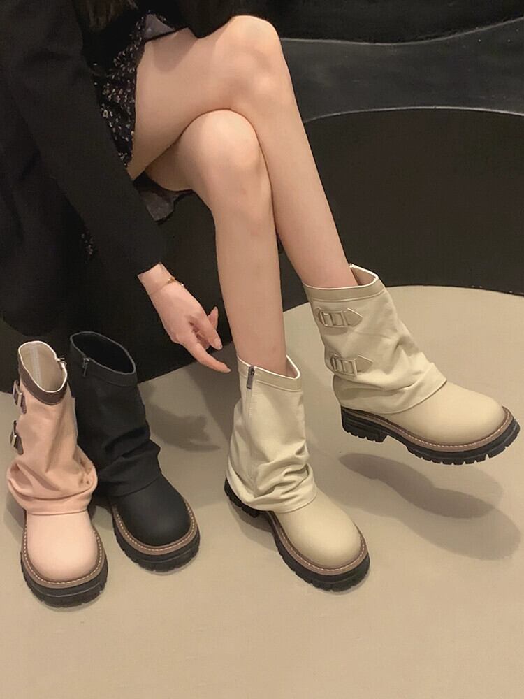 Jia Bujia ブーツ レディース ショートブーツ 2023 夏インターネットセレブレトロ多用途ハンサムストリートオートバイブーツ 靴 シューズ サマー 夏物 jxjxf40474837379
