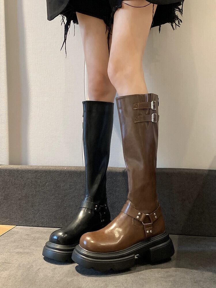 Jia Bufake ブーツの女性 2023 秋の新ファッション多用途レトロブラウンブーツ厚底ナイトブーツトレンディな 靴 シューズ オータム 秋物 jxjxf59160124794