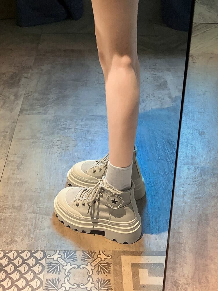 Jia Bujia キャンバスシューズの女性 2023 新しい夏のストリートスタイル多用途学生軽量厚底快適なハイトップシューズトレンド 靴 サマー 夏物 jxjxf90705572065