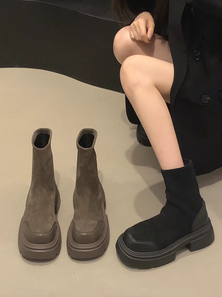 Jia Bufake ショートブーツ女性 2023 夏多用途レトロスリム厚いヒールストリートスリムブーツトレンド 靴 シューズ サマー 夏物 jxjxf52227805142