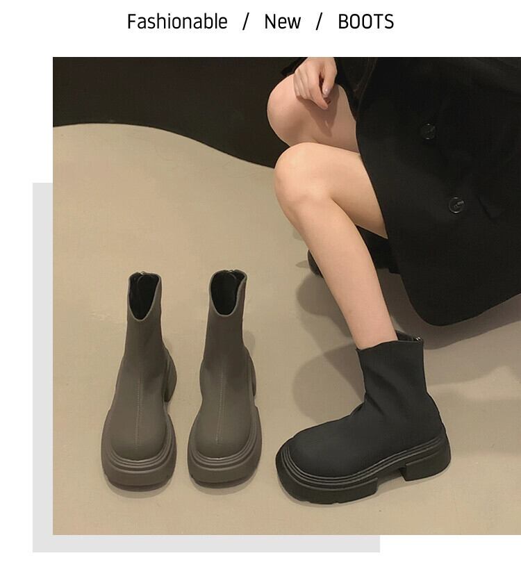 Jia Bujia ブーツ レディース ショートブーツ 2023 夏新レトロハンサム厚底ストリート英国スタイルスリムブーツトレンド 靴 シューズ サマー 夏物 jxjxf57926710015