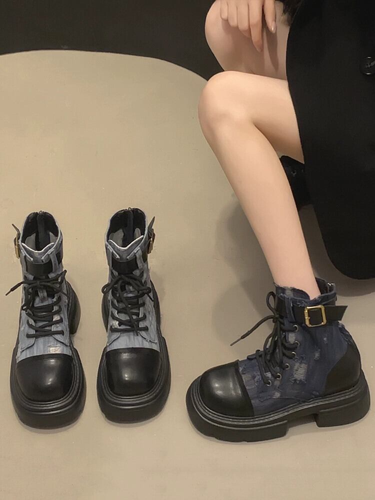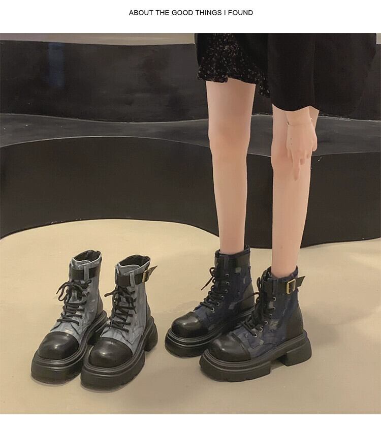 Jia Bujia インターネット有名人ショートブーツの女性 2023 新しい夏のファッション多用途レトロな eign スタイル厚いヒールストリートマーティンブーツ 靴 シューズ サマー 夏物 jxjxf51680099038