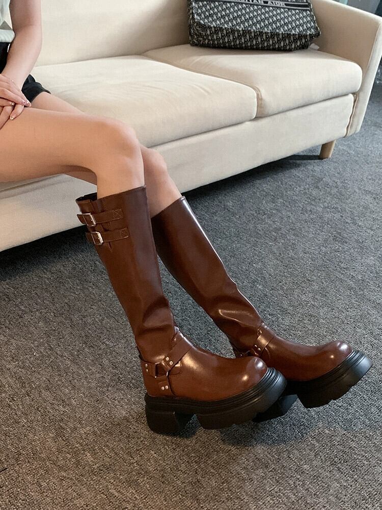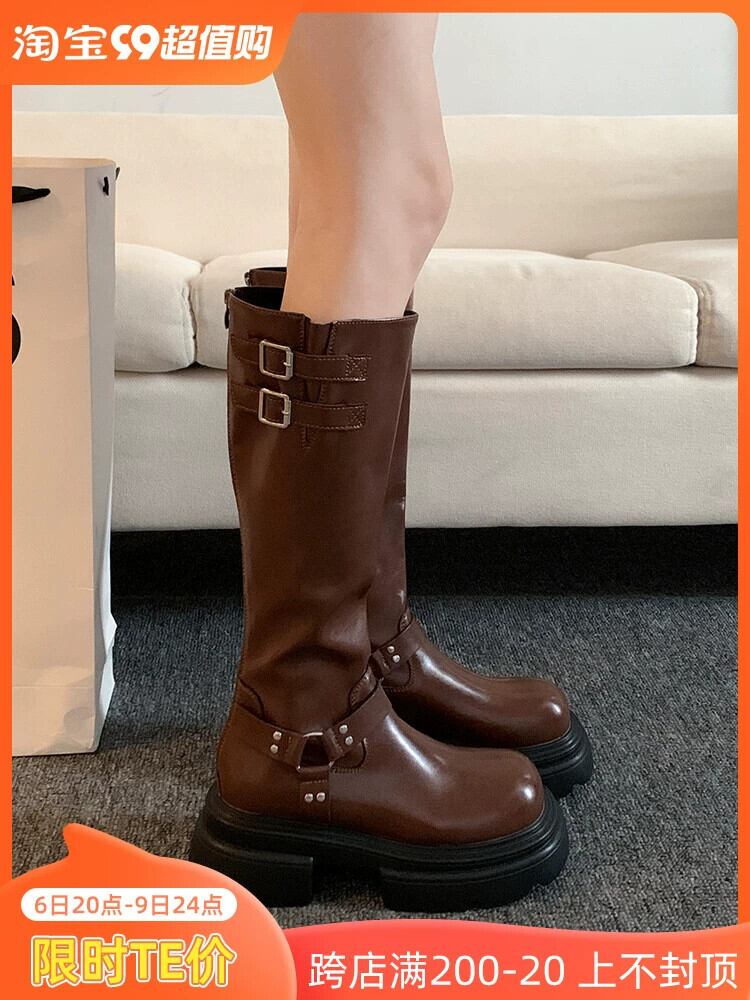 Jia Bufake 厚いヒールブーツの女性 2023 夏の新ファッションレトロフレンチハンサムストリートナイトブーツトレンド 靴 シューズ サマー 夏物 jxjxf93376237688