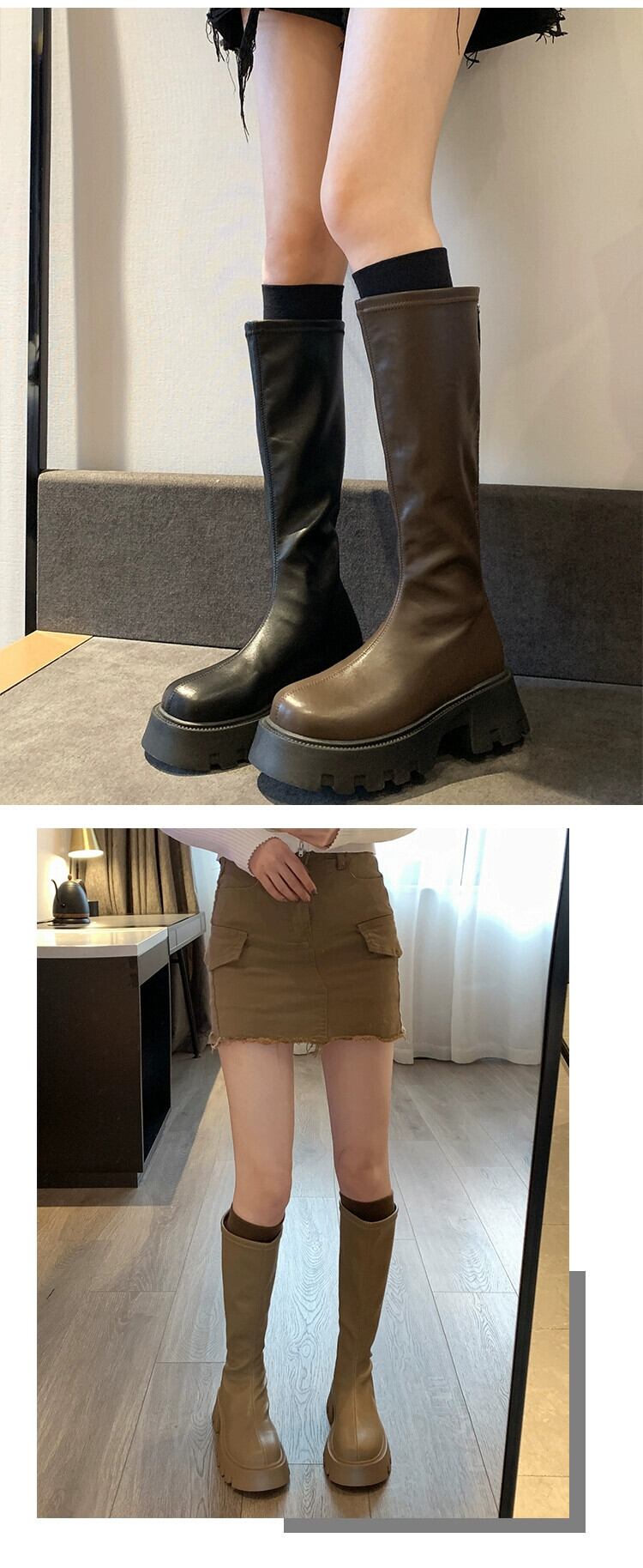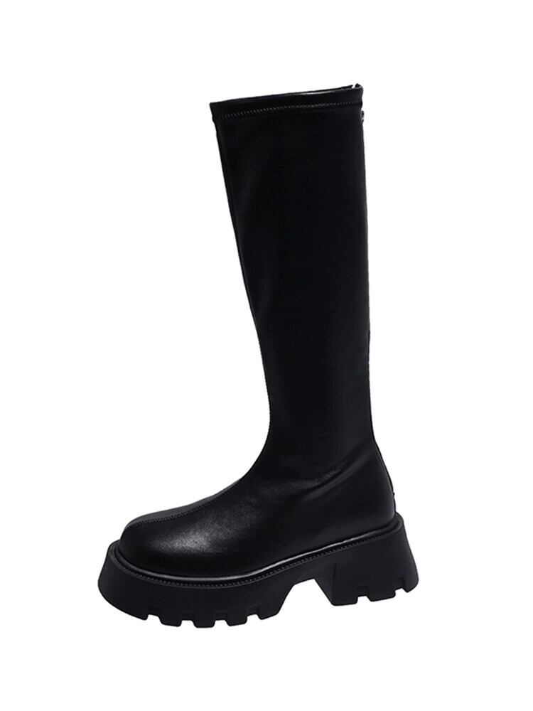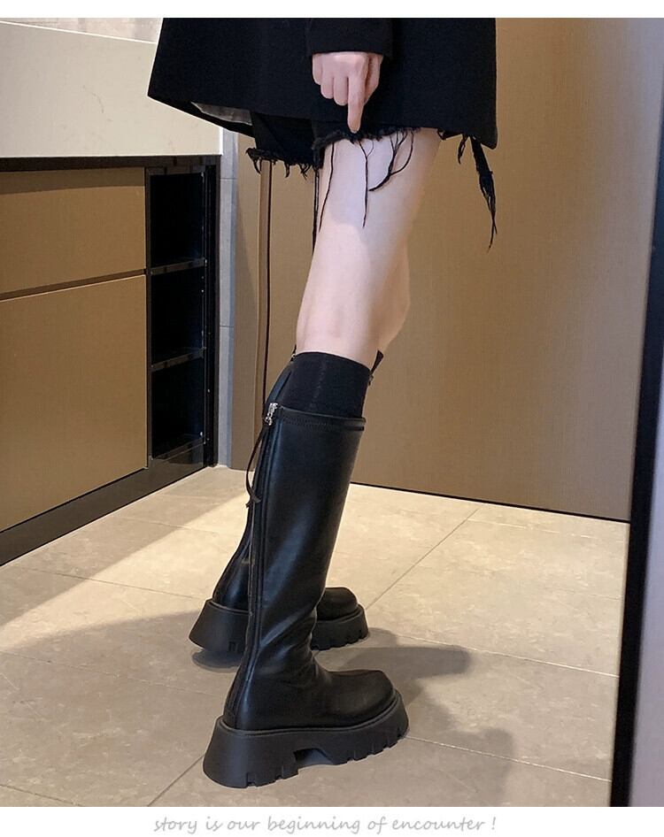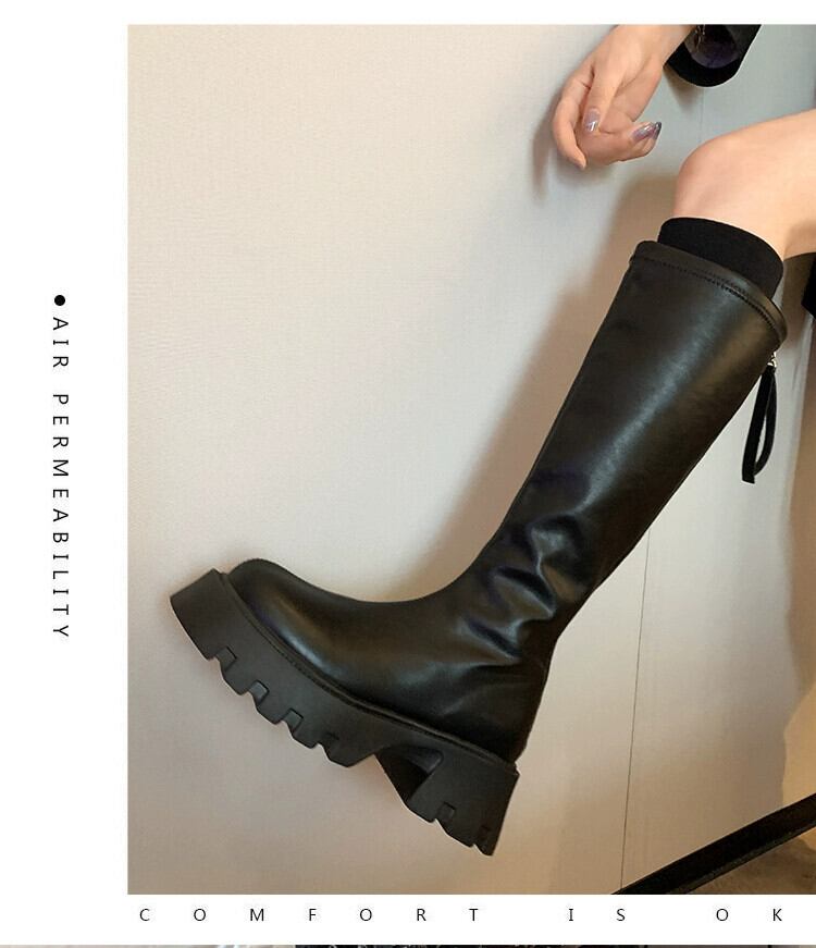 Jia Bujia 夏膝上ブーツの女性 2023 新しい多用途レトロシンプルな気質太いヒールスリムブーツ 靴 シューズ サマー 夏物 jxjxf96896982983