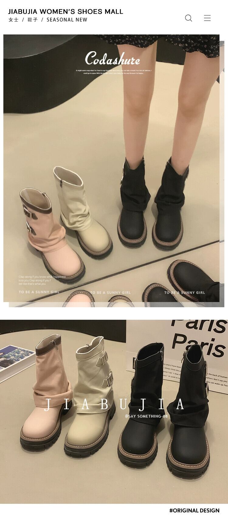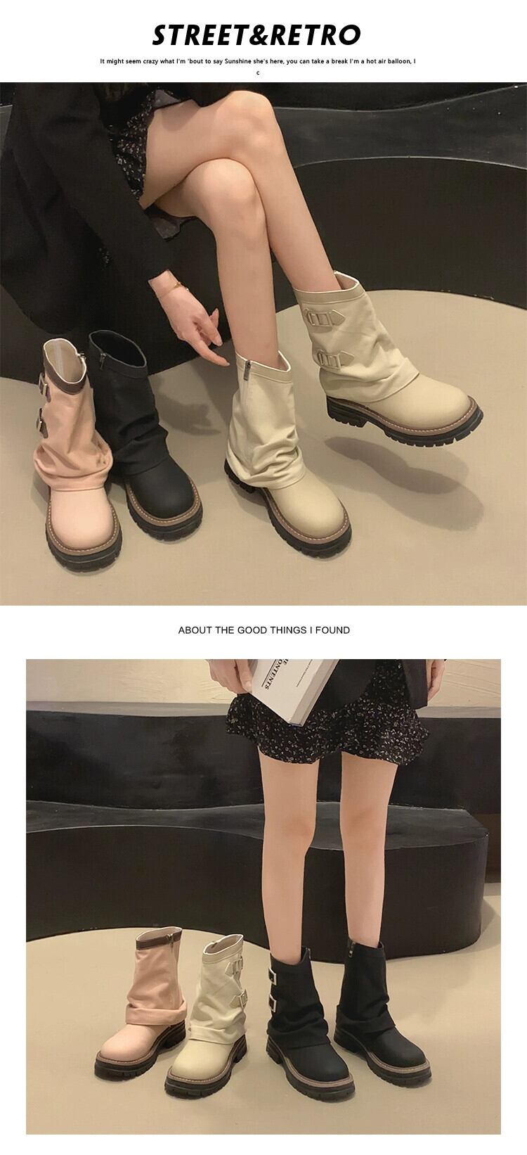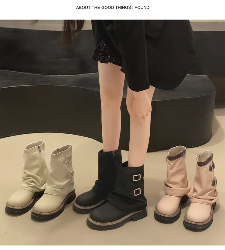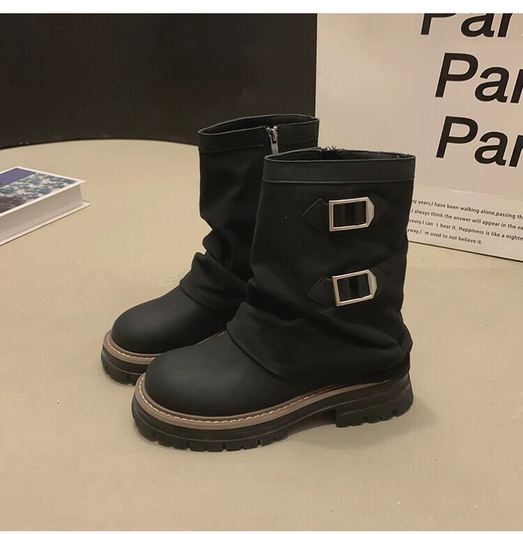 Jia Bufake ショートブーツ女性の 2023 夏インターネット有名人スーパーホットレトロ多用途厚いヒールストリートオートバイブーツ 靴 シューズ サマー 夏物 jxjxf34286216153