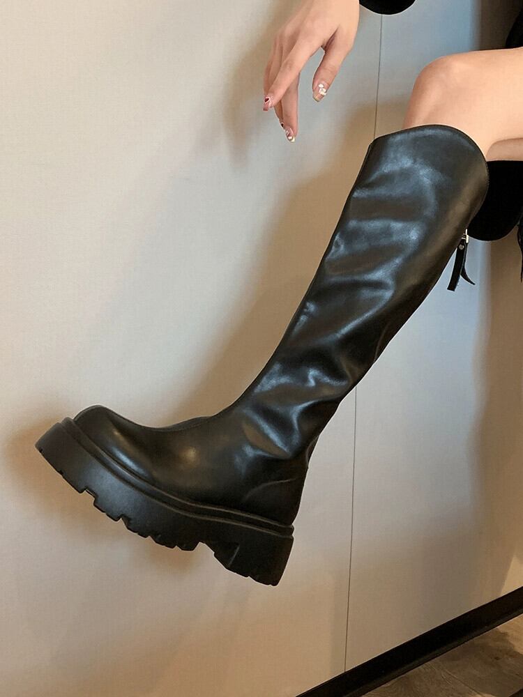 Jia Bufake ブーツの女性 2023 夏の新スタイルのファッションシンプルな eign スタイルレトロ厚いヒールハンサムスリムブーツ 靴 シューズ サマー 夏物 jxjxf6595777609