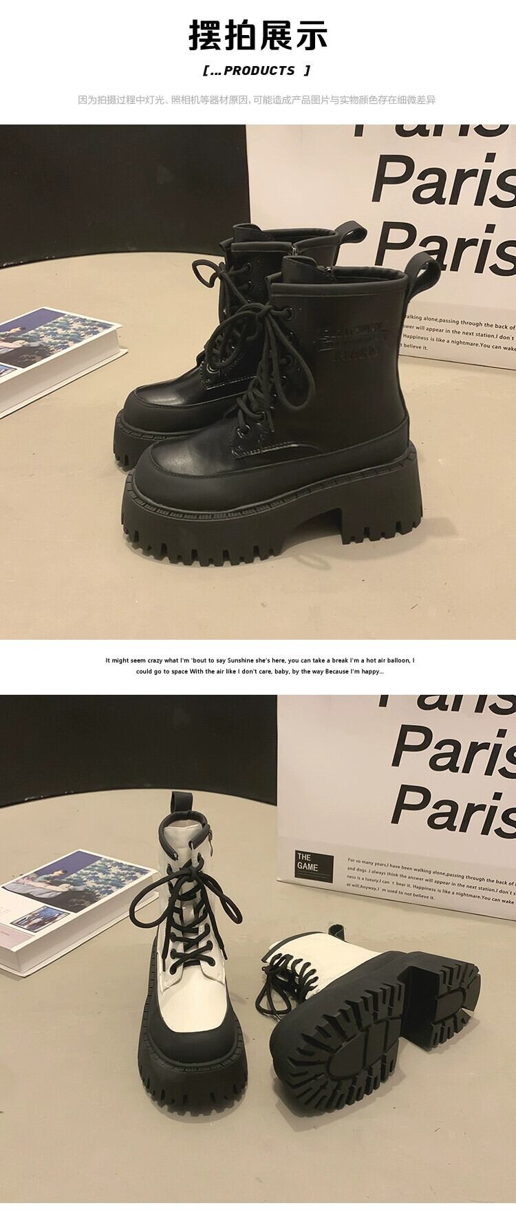 Jia Bujia 英国スタイルのショートブーツの女性 2023 夏の新ファッション多用途小型厚底カジュアルマーティンブーツ 靴 シューズ サマー 夏物 jxjxf8549927004