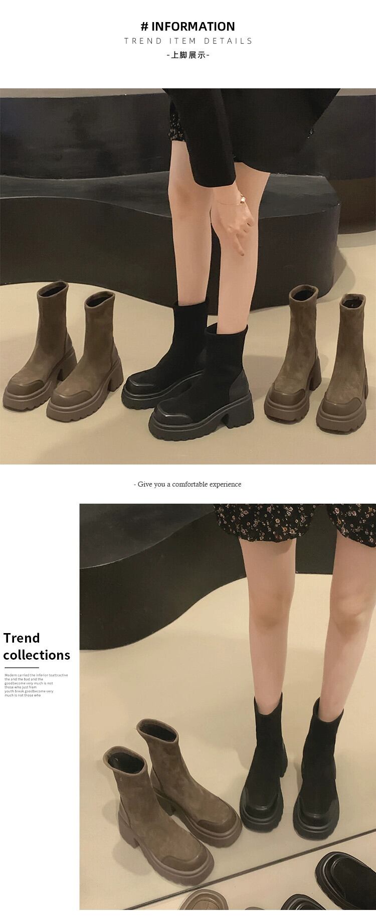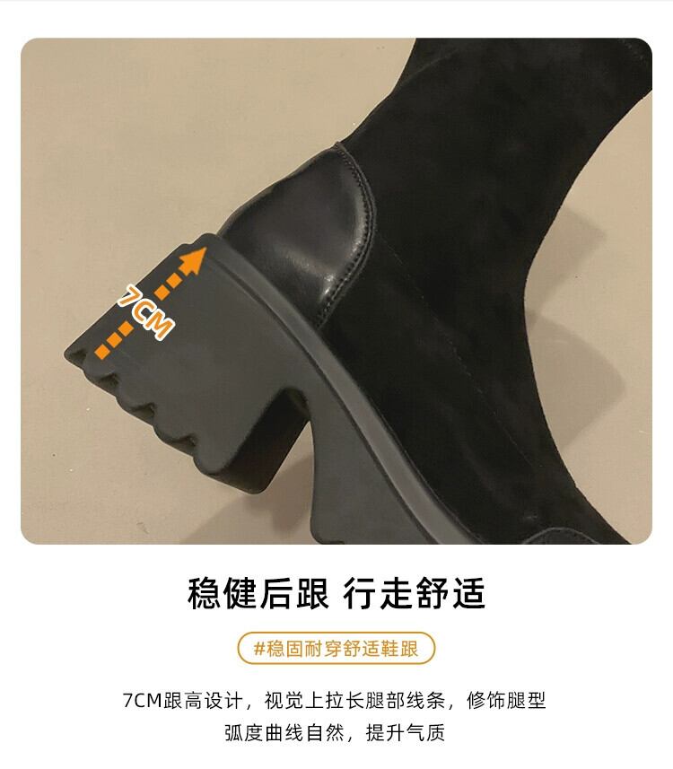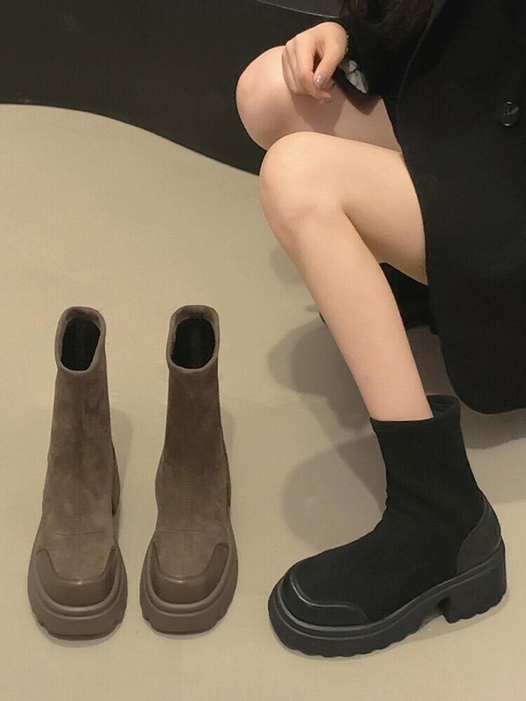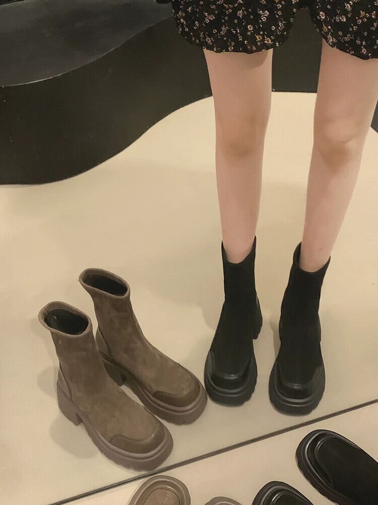 Jia Bufake 厚いヒールショートブーツの女性 2023 夏の新ファッション多用途レトロ comtable 小さな弾性ブーツ 靴 シューズ エラスティック 伸縮 サマー 夏物 jxjxf36920362777