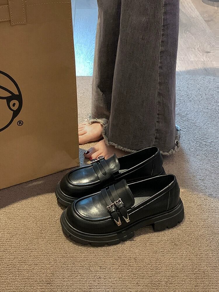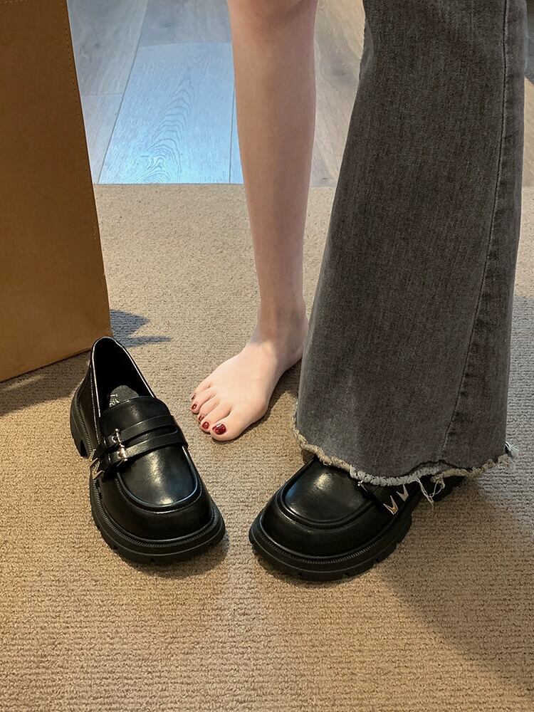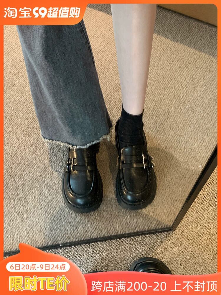 Jia Bujia 英国スタイルの小さな革の靴の女性 2023 夏の新スタイルのベルトバックルレトロ comtable 厚底ローファー シューズ サマー 夏物 レザー ハーネス jxjxf21578268218