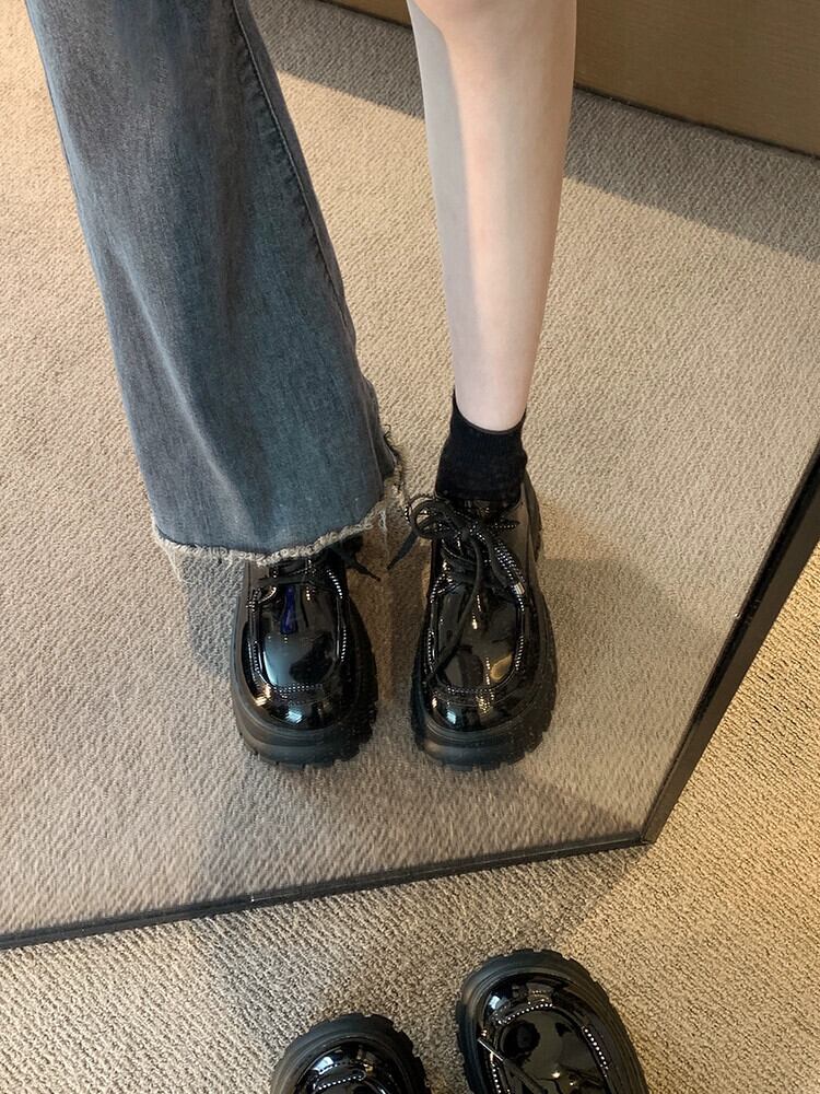 Jia Bujia 婦人靴 2023 夏の新スタイルファッショナブルで多用途な学生英国スタイルの厚底コンタブル小さな革靴 シューズ サマー 夏物 レザー jxjxf94477419516