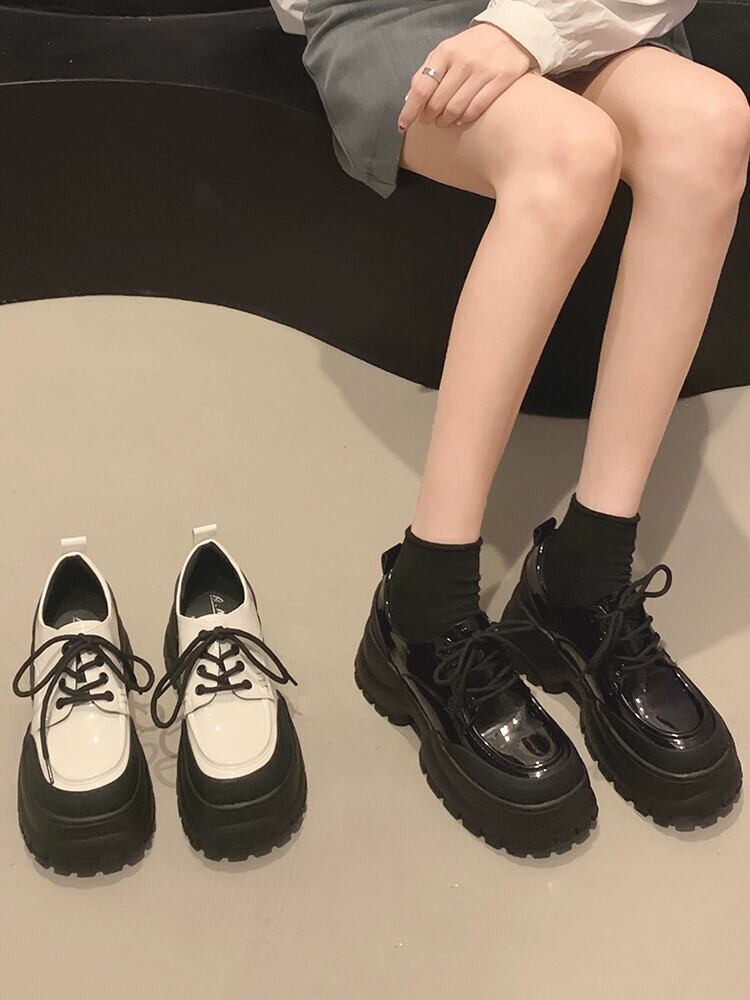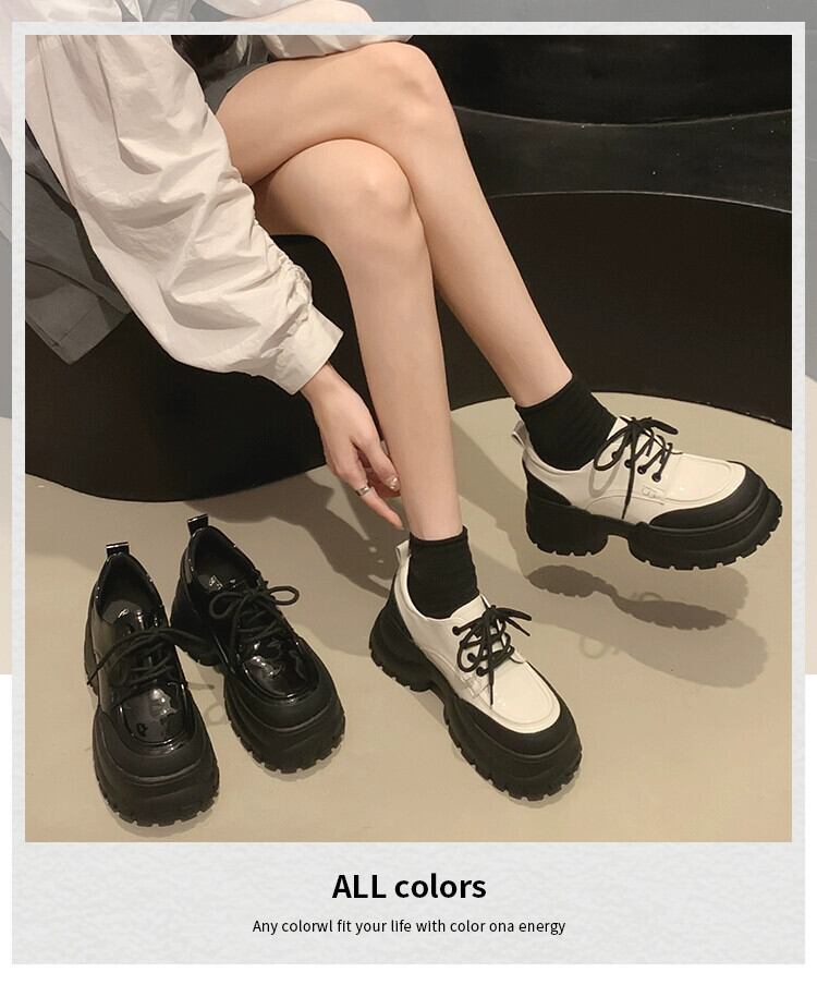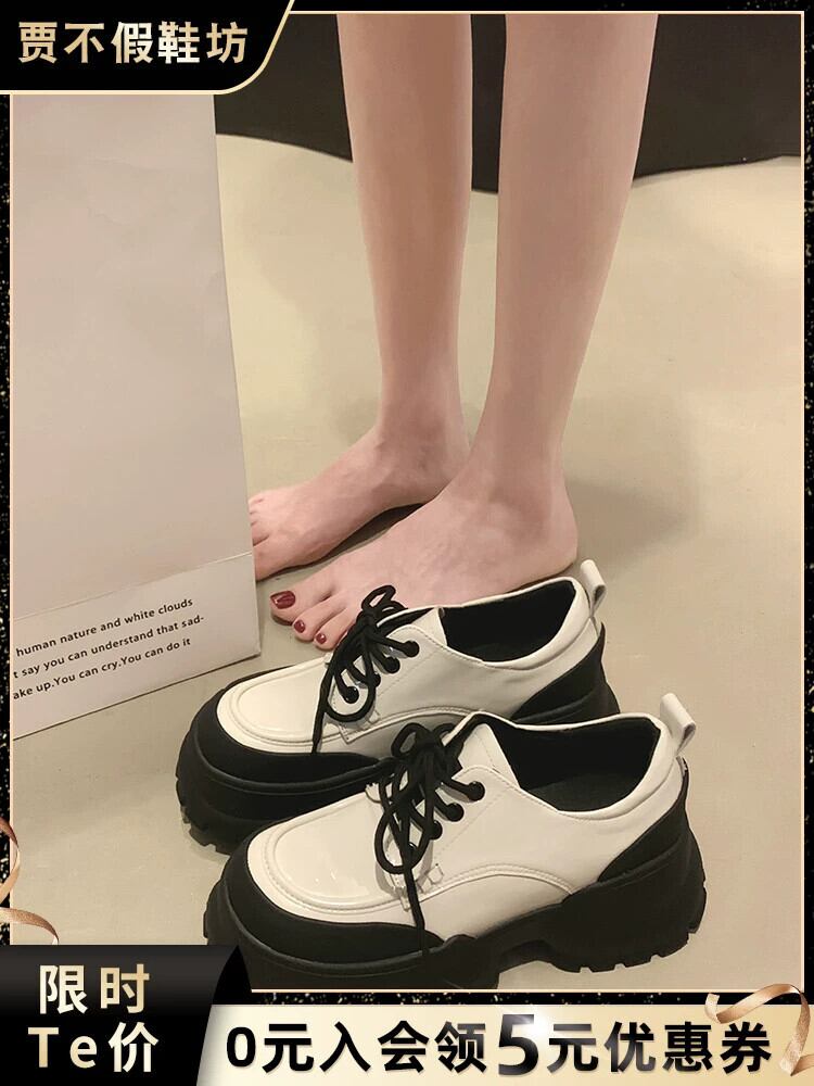 Jia Bujia 婦人靴 2023 夏の新ファッション多用途学生厚底コンタブルレトロ小さな革靴トレンド シューズ サマー 夏物 レザー jxjxf95226518196