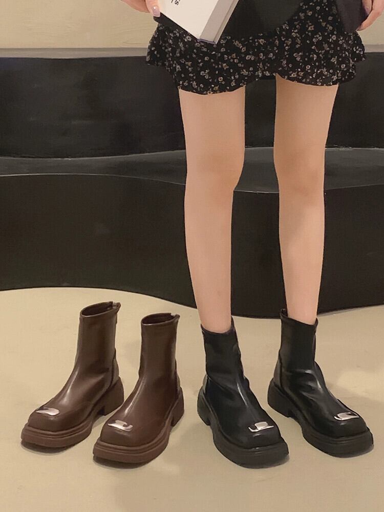 Jia Bujia インターネットセレブショートブーツ女性 2023 新しい夏のスタイルスーパーファッション多用途レトロスタイル太いヒールスリムブーツ 靴 シューズ サマー 夏物 jxjxf2860322087