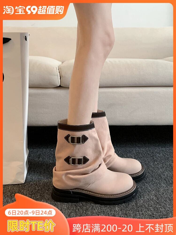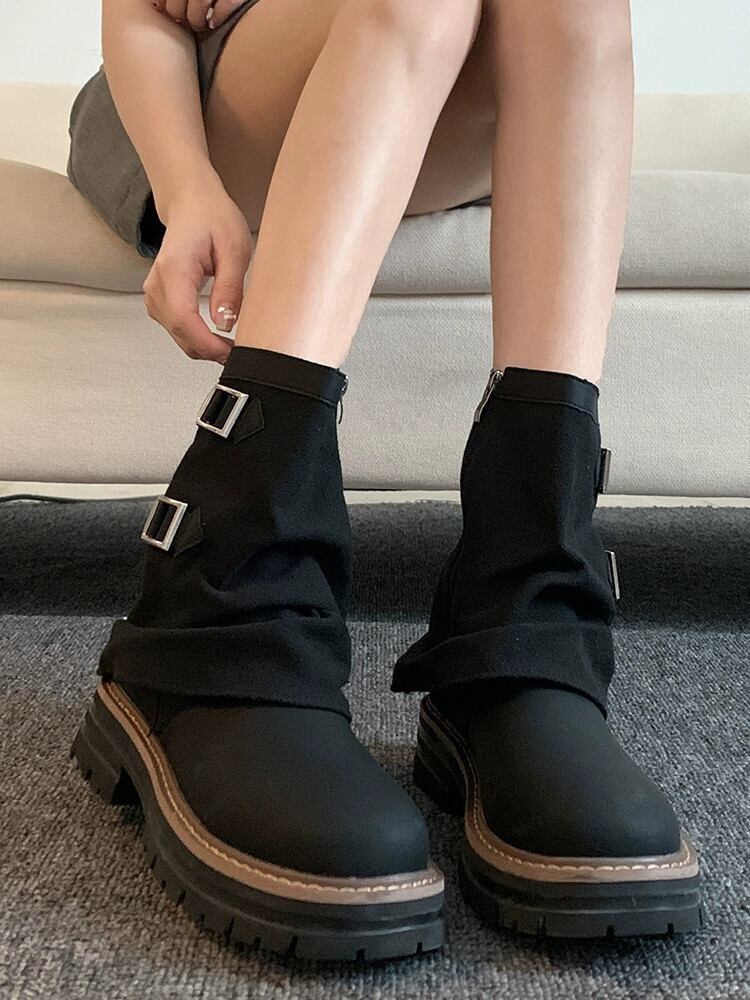 Jia Bujia レディースショートブーツ 2023 夏の新ファッション多用途レトロハンサム厚底ストリートバイクブーツトレンド 靴 シューズ サマー 夏物 jxjxf32666340394