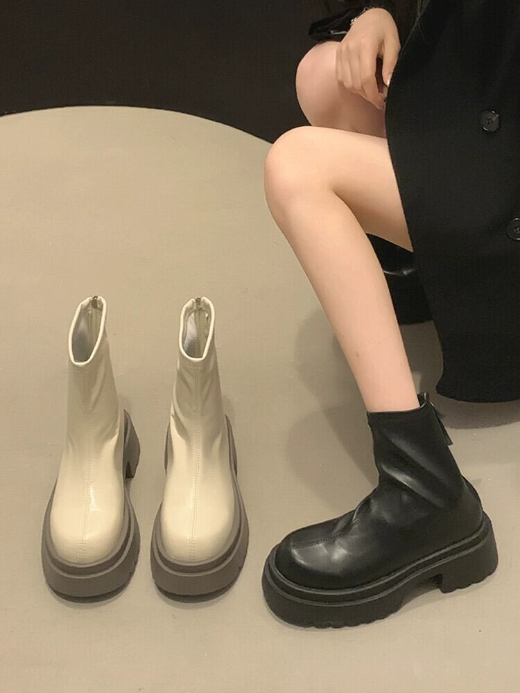 Jia Bujia インターネットセレブショートブーツ女性 2023 夏の新ファッションレトロスリム小型厚底スリムブーツトレンディな 靴 シューズ サマー 夏物 jxjxf50449695855