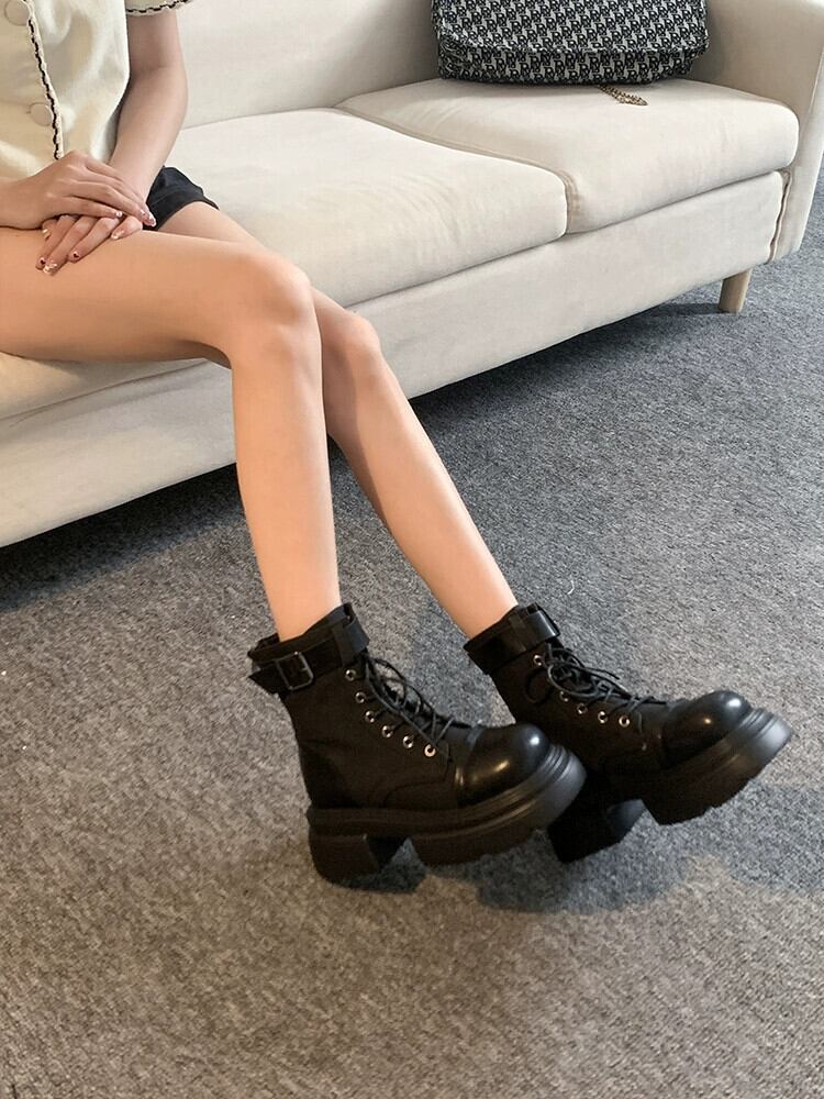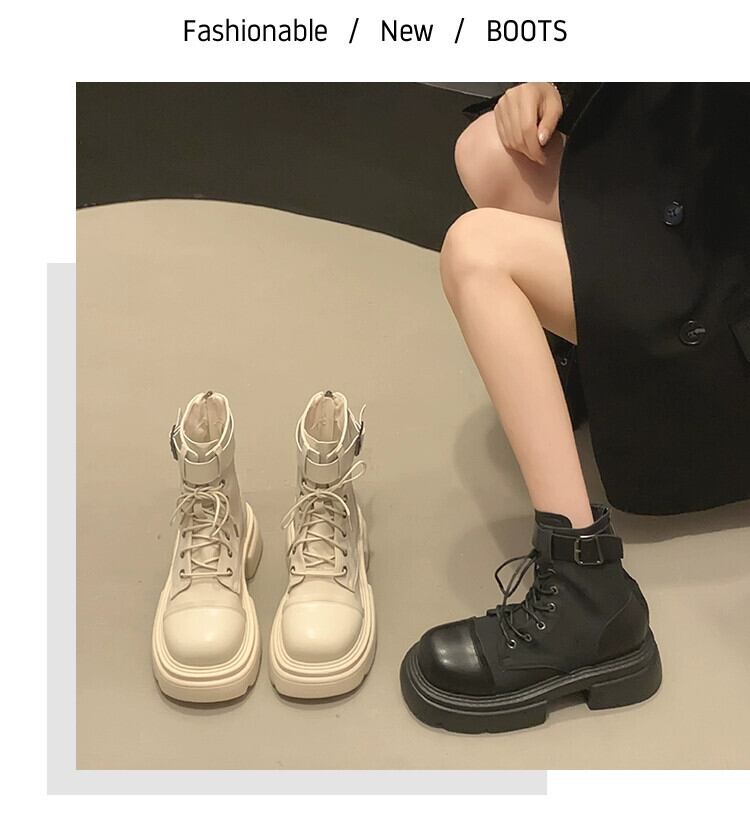 Jia Bufake 厚いヒールショートブーツの女性 2023 夏の新スタイルファッショナブルでハンサムな多用途レトロフレンチスタイルストリートマーティンブーツ 靴 シューズ サマー 夏物 jxjxf40442290217