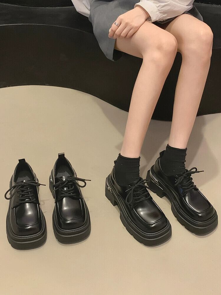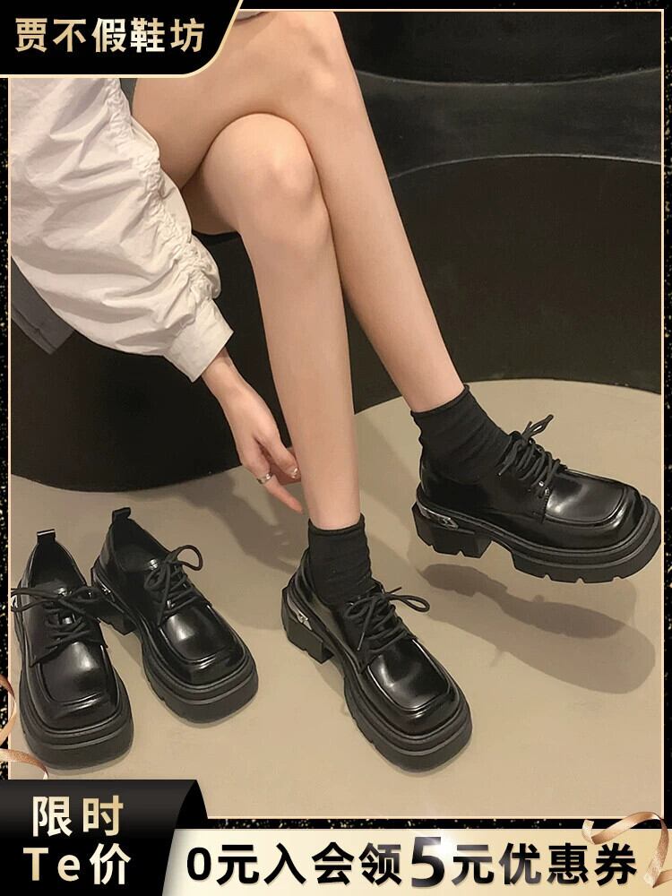 Jia Bujia スクエアトゥシューズの女性の 2023 秋多用途通勤通勤可能な厚底の小さな革靴 オータム 秋物 レザー スクウェア jxjxf54945575775