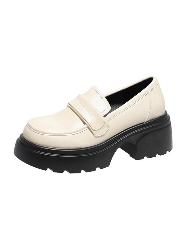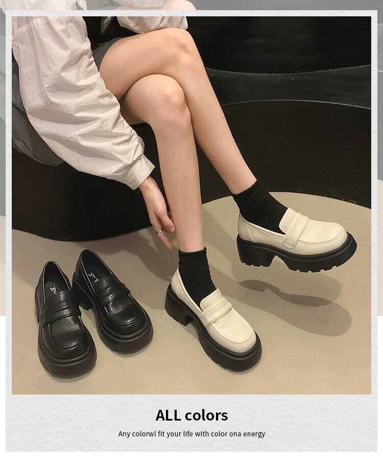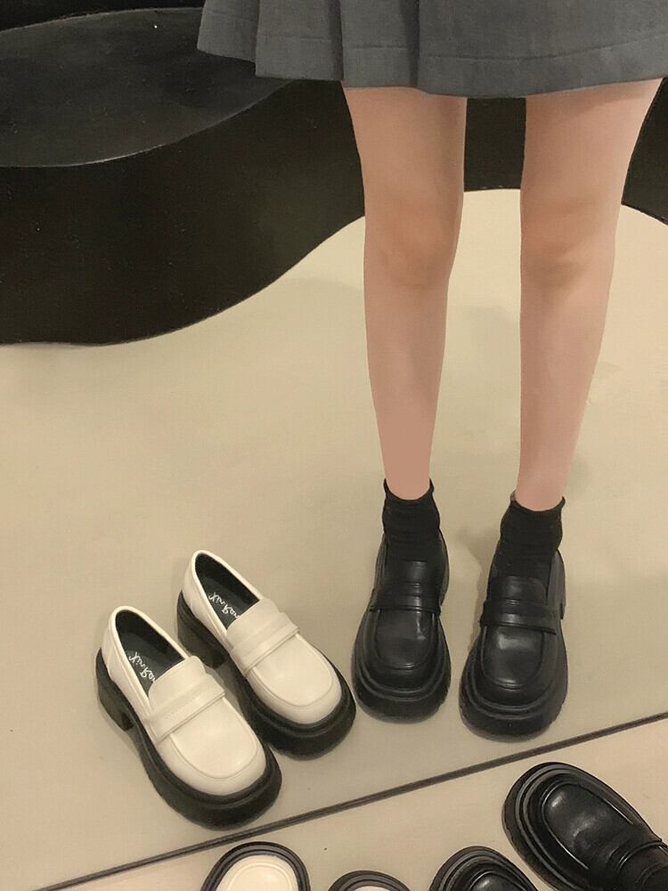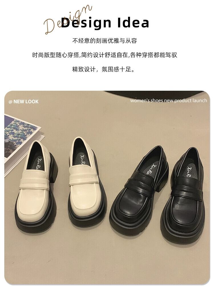 Jia Bujia レディースローファー 2023 夏の新スタイルシンプルな気質フランス多用途太いヒールカジュアル小さな革靴 シューズ サマー 夏物 レザー jxjxf11799204141