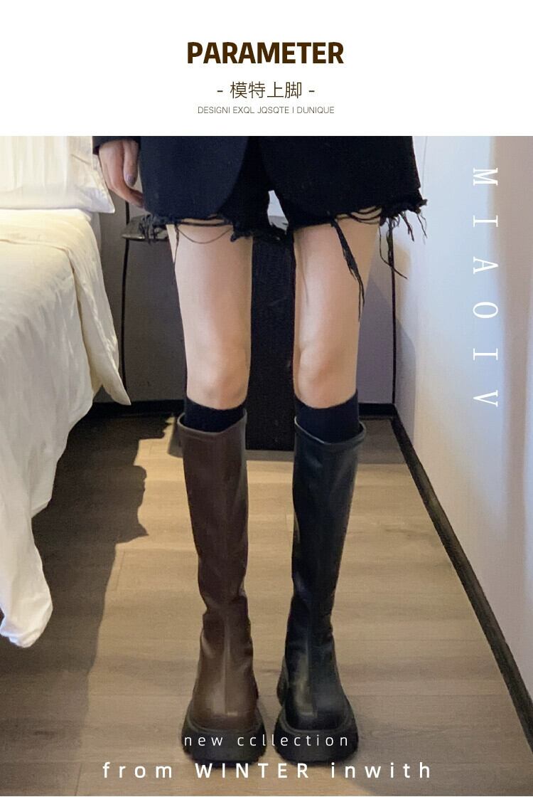 Jia Bufake ブーツの女性 2023 夏の新スタイルのハンサムで多用途のレトロ痩身厚底英国スタイルのスリムブーツ 靴 シューズ サマー 夏物 jxjxf27334331998