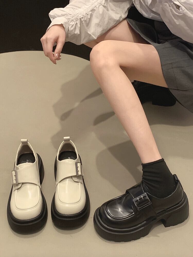 Jia Bufake シングルシューズの女性 2023 夏の新ファッションレトロベルトバックル小さな太いヒールファッショナブルな小さな革の靴 サマー 夏物 レザー ハーネス jxjxf75471208815