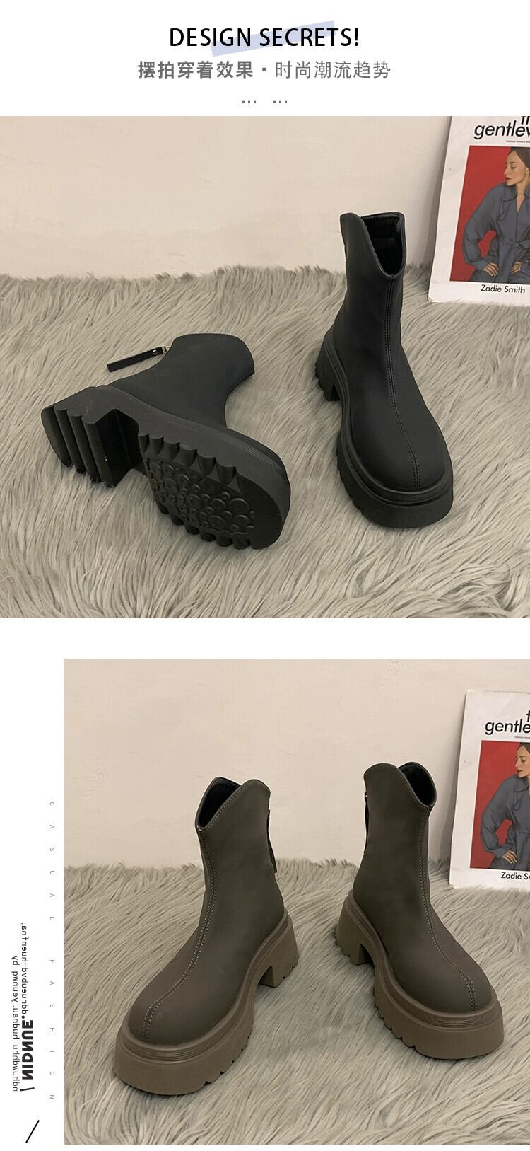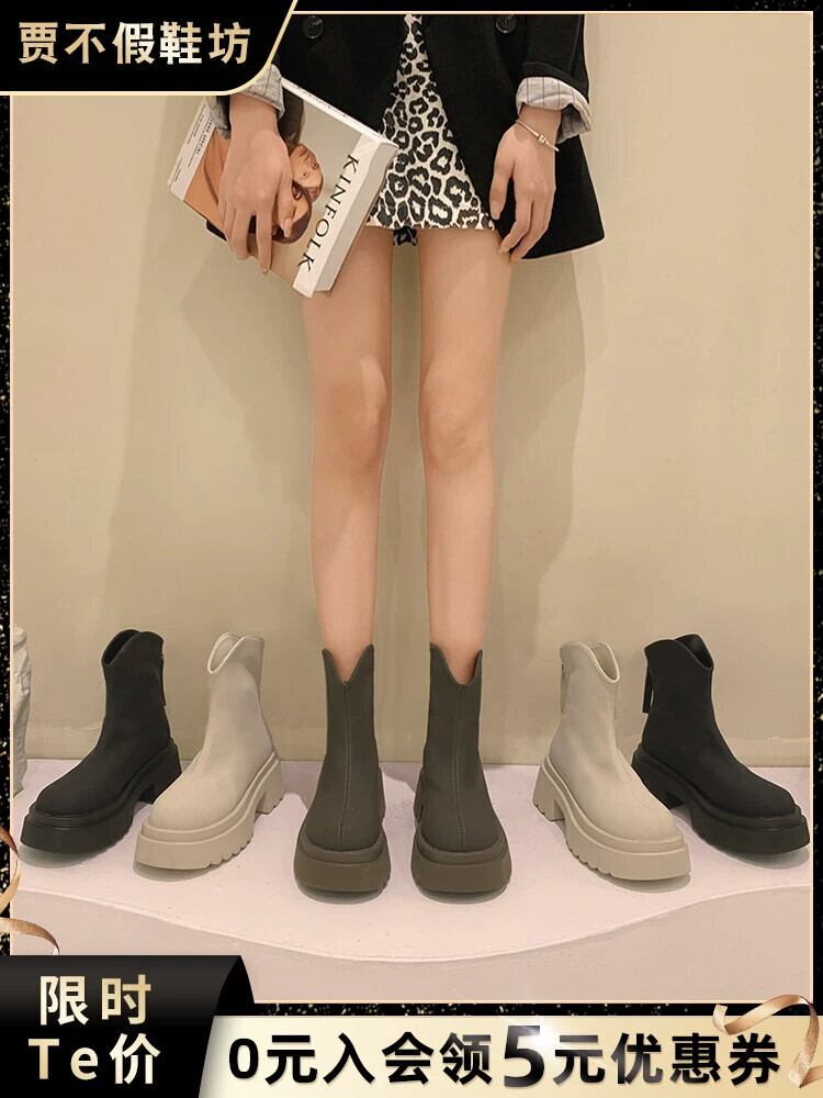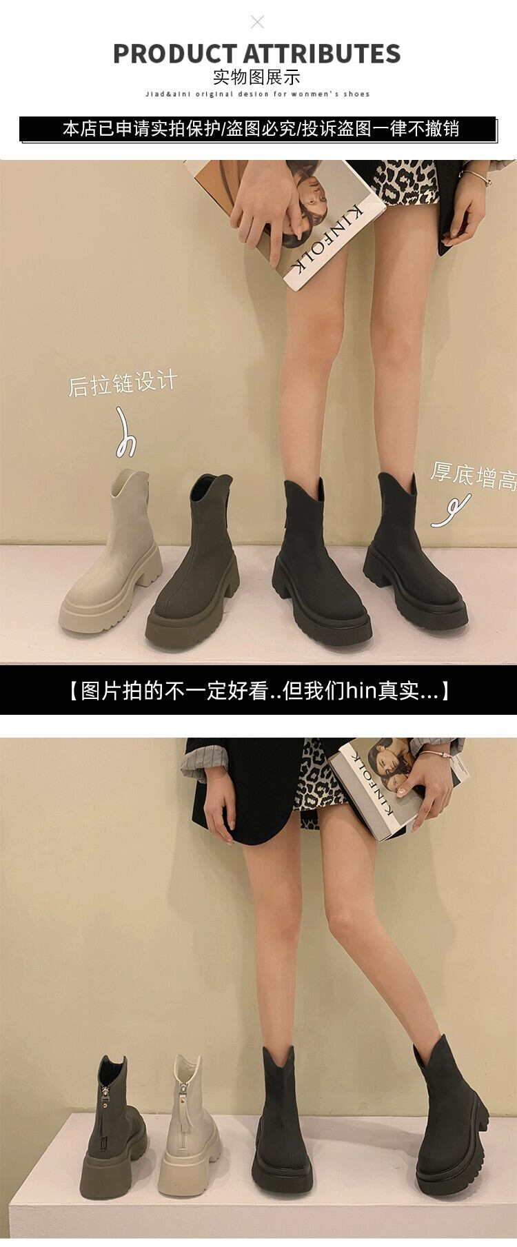 Jia Bujia インターネットセレブショートブーツ女性 2023 新しい秋スタイルシンプルで多用途ファッショナブルな eign スタイル太いヒールスリムブーツ 靴 シューズ オータム 秋物 jxjxf44413289809
