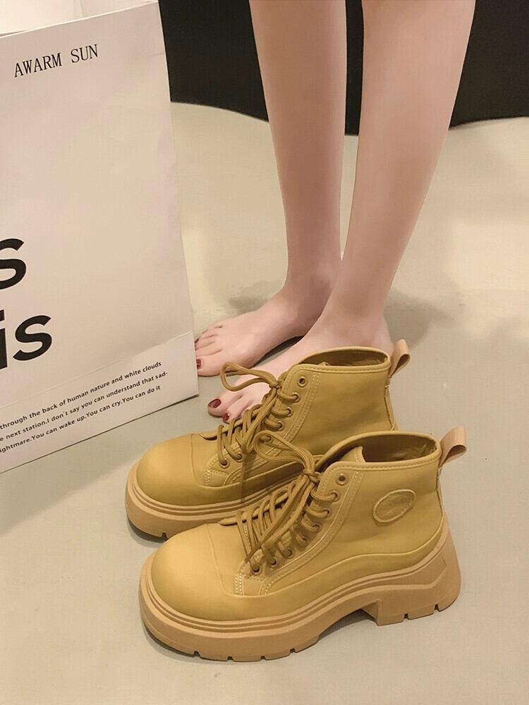 Jia Bujia ビッグイエローブーツ女性の 2023 夏スタイルスーパーホットハンサムレトロ多用途ストリート太いヒールマーティンブーツトレンディ 靴 シューズ サマー 夏物 jxjxf79967505642