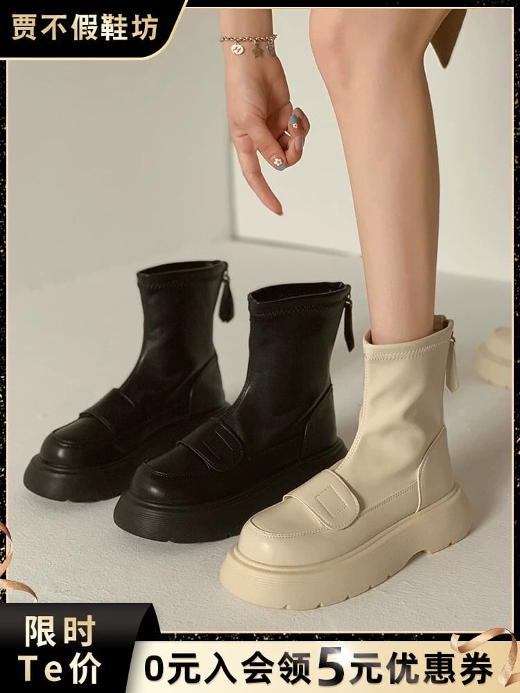 Jia Bufake ショートブーツ女性 2023 夏インターネット有名人スーパーホットレトロ痩身小さな厚い底スリムブーツ 靴 シューズ サマー 夏物 jxjxf80529649119