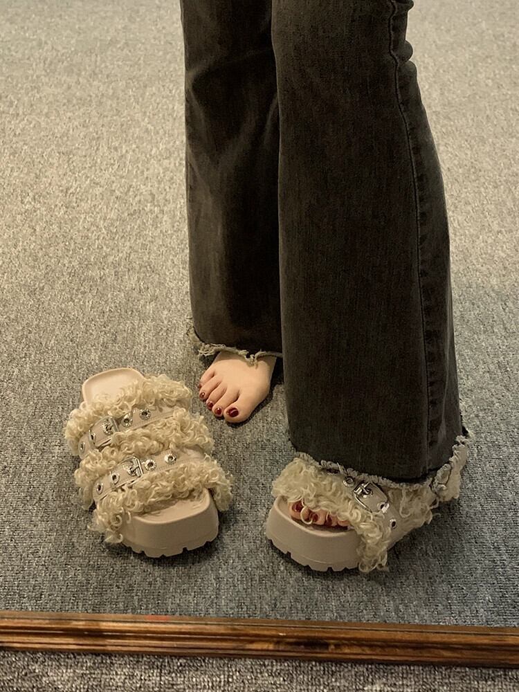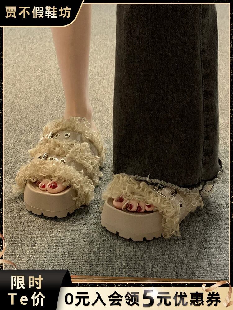 Jia Bujia インターネット有名人のスリッパ女性 2023 夏の新ファッションレトロベルトバックル厚底 comtable ぬいぐるみドラッグトレンド ミュール 靴 シューズ サマー 夏物 ハーネス jxjxf90404721679