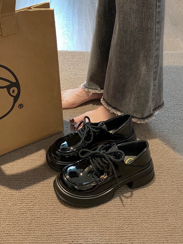 Jia Bujia 英国スタイルのシングルシューズの女性 2023 新しい夏のスタイルのスーパーと多用途の小さな太いヒールカジュアルな小さな革靴 サマー 夏物 レザー jxjxf47437036599