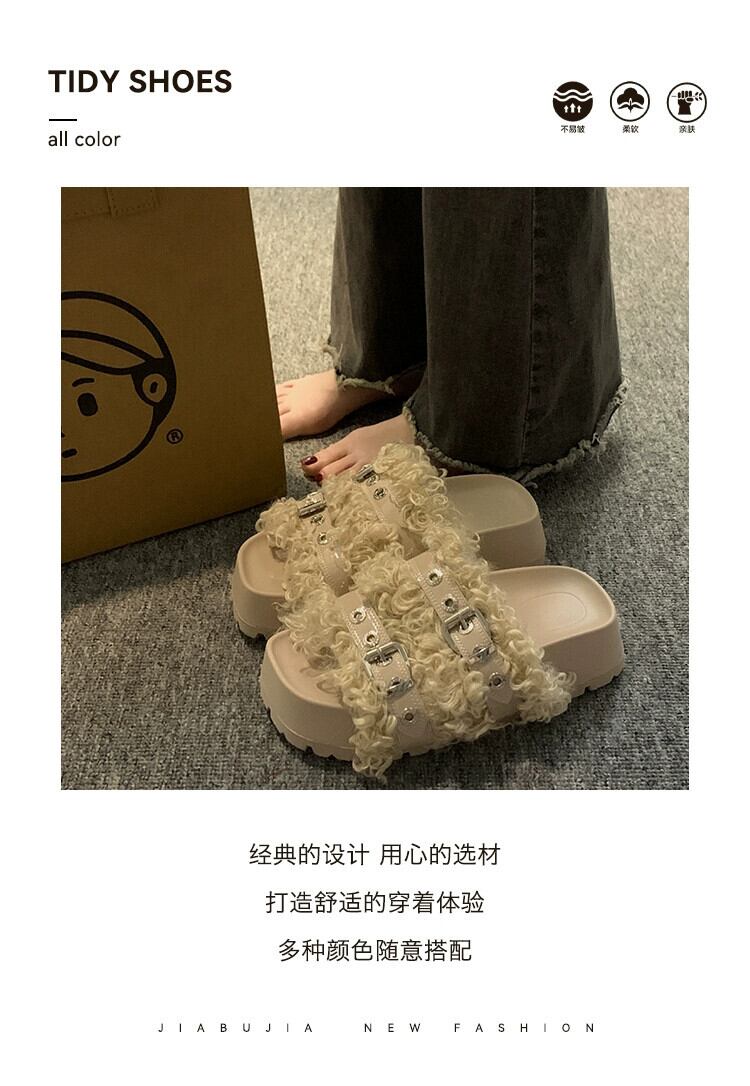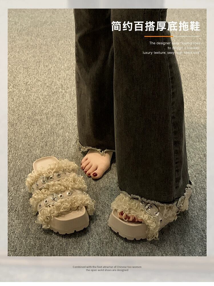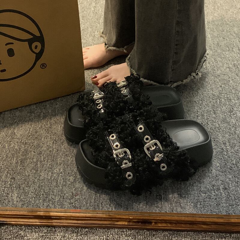 Jia Bujia の超人気スリッポンスリッパ女性 2023 秋の新スタイルレトロトレンディな快適な厚底ファースリッパ ミュール 靴 シューズ オータム 秋物 jxjxf29316721637