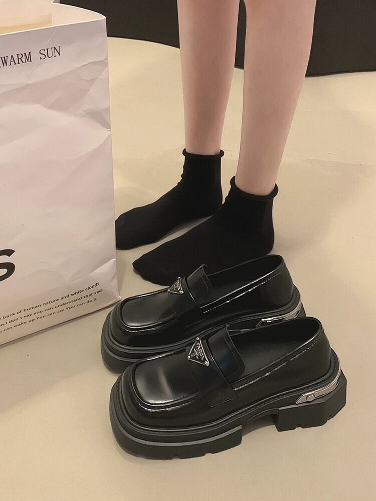 Jia Bufake シングルシューズの女性 2023 新しい夏のファッション多用途レトロ comtable 厚いヒール英国スタイルの小さな革靴 サマー 夏物 レザー jxjxf99500891369