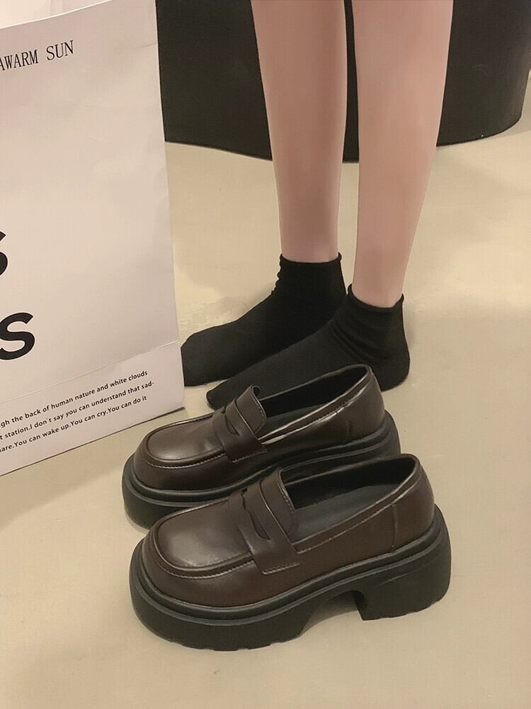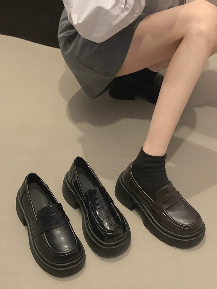 Jia Bujia 秋のローファーの女性 2023 レトロシンプルな多用途 Comtable 太いヒールの小さな革の靴 シューズ オータム 秋物 レザー jxjxf6445804716