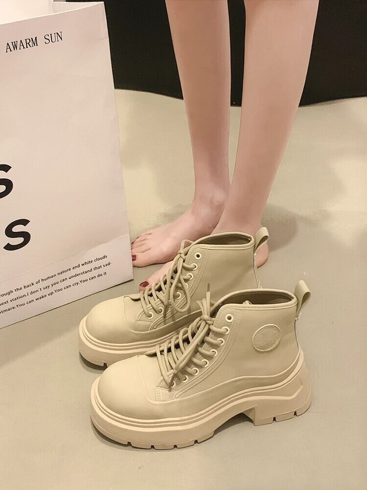 Jia Bujia 女性のルバーブブーツ 2023 夏の新スタイルレトロハンサム万能太いヒールストリートファッションマーティンブーツ 靴 シューズ サマー 夏物 jxjxf42606779297