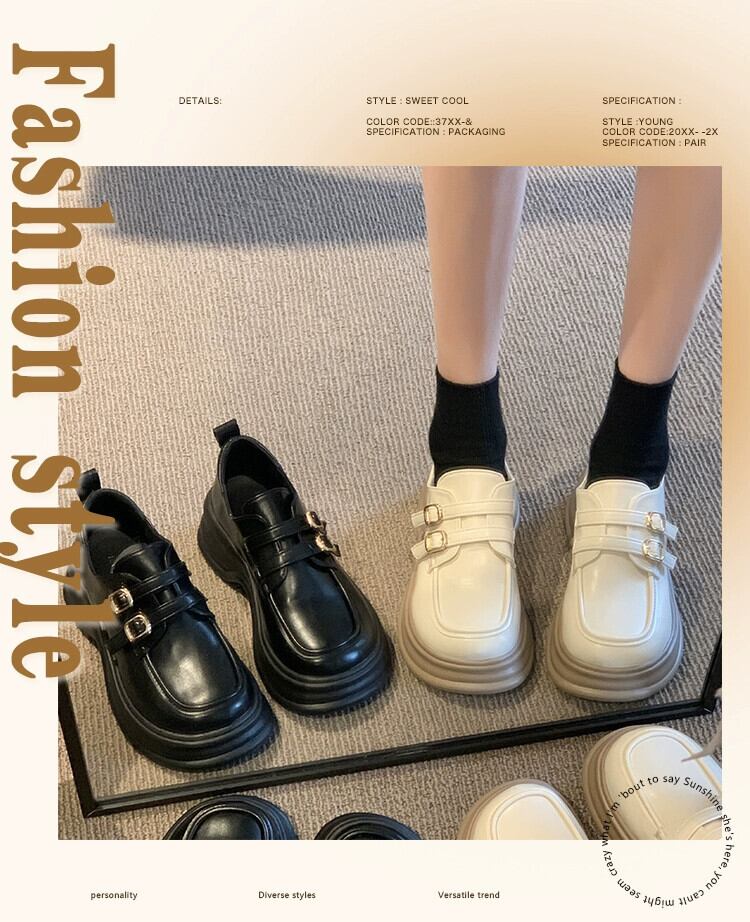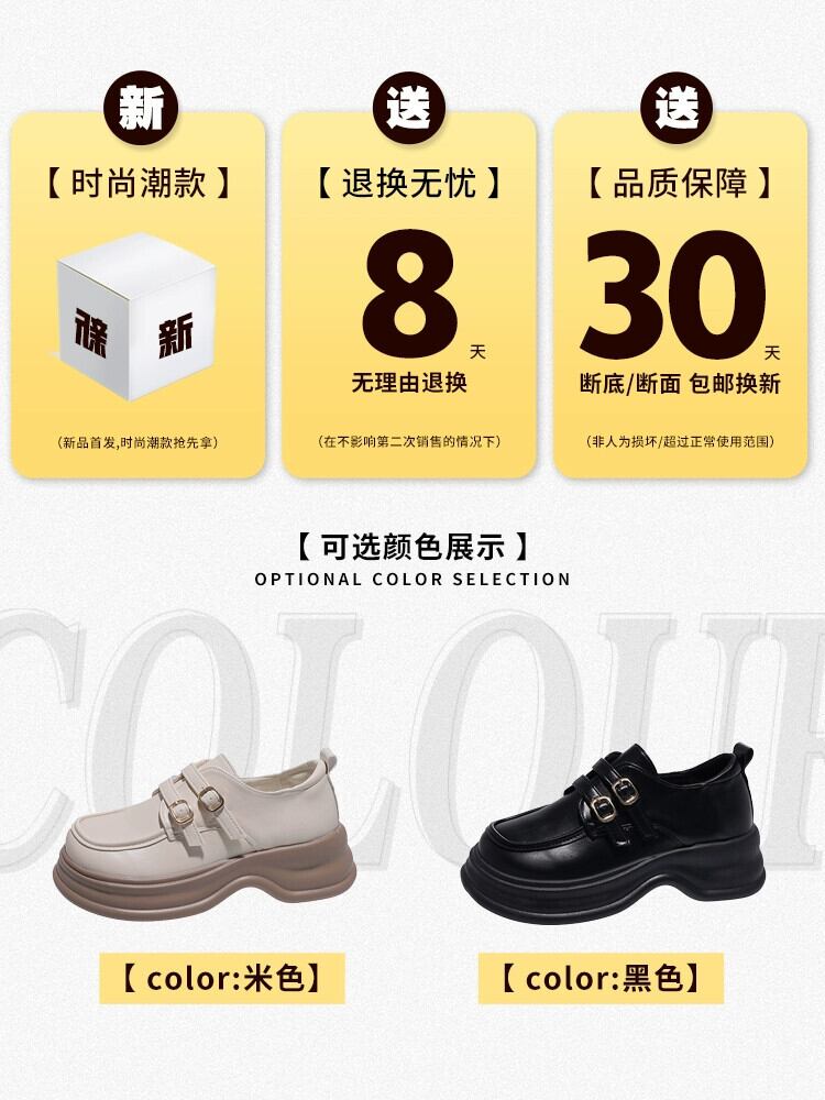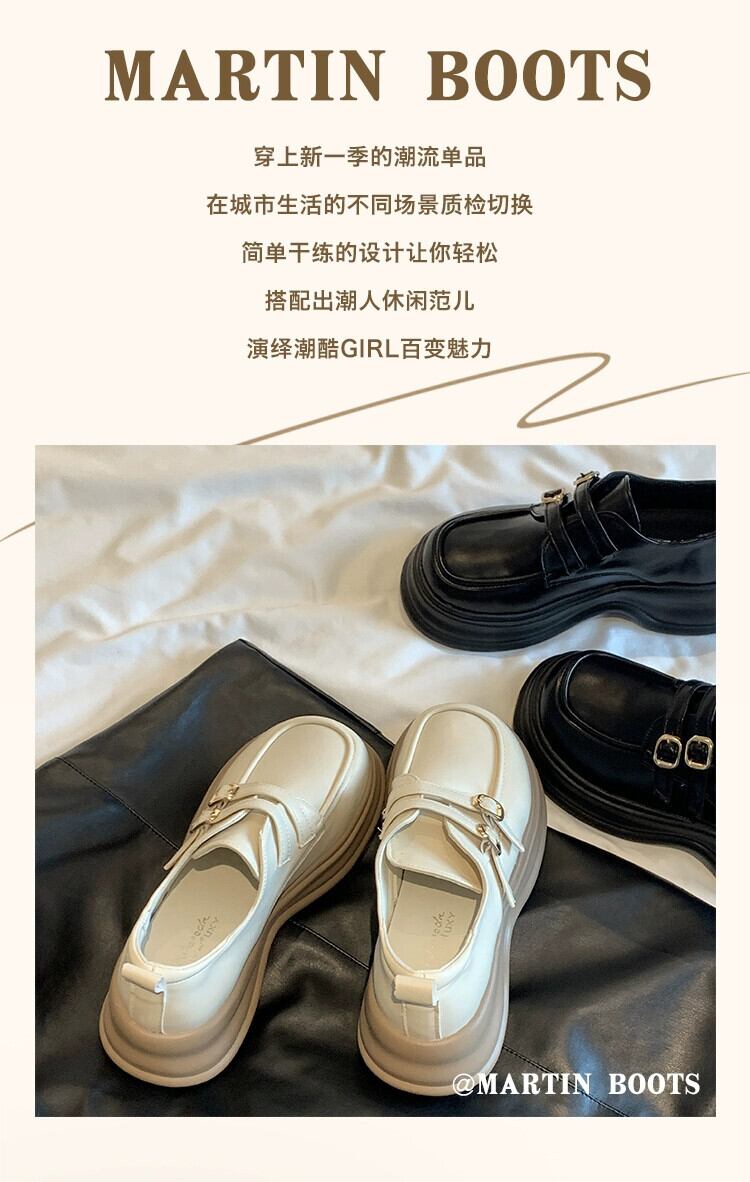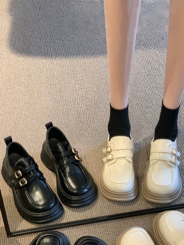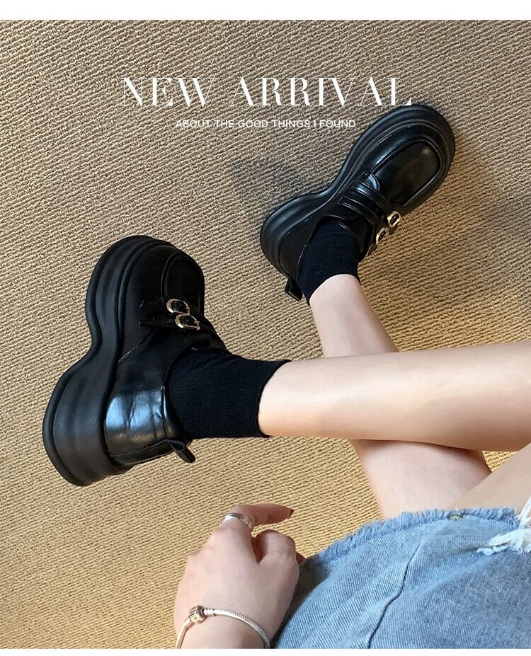 Jia Bujia 厚いヒールローファー女性 2023 夏の新スタイルベルトバックルレトロフレンチカジュアル小さな革靴 シューズ サマー 夏物 レザー ハーネス jxjxf11382778390
