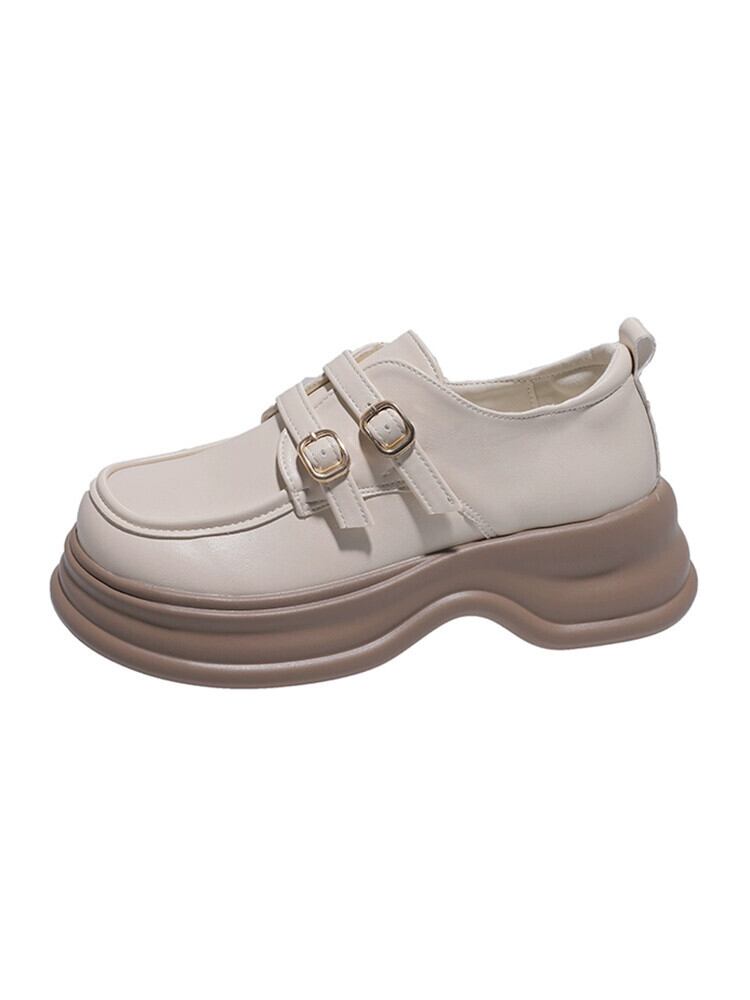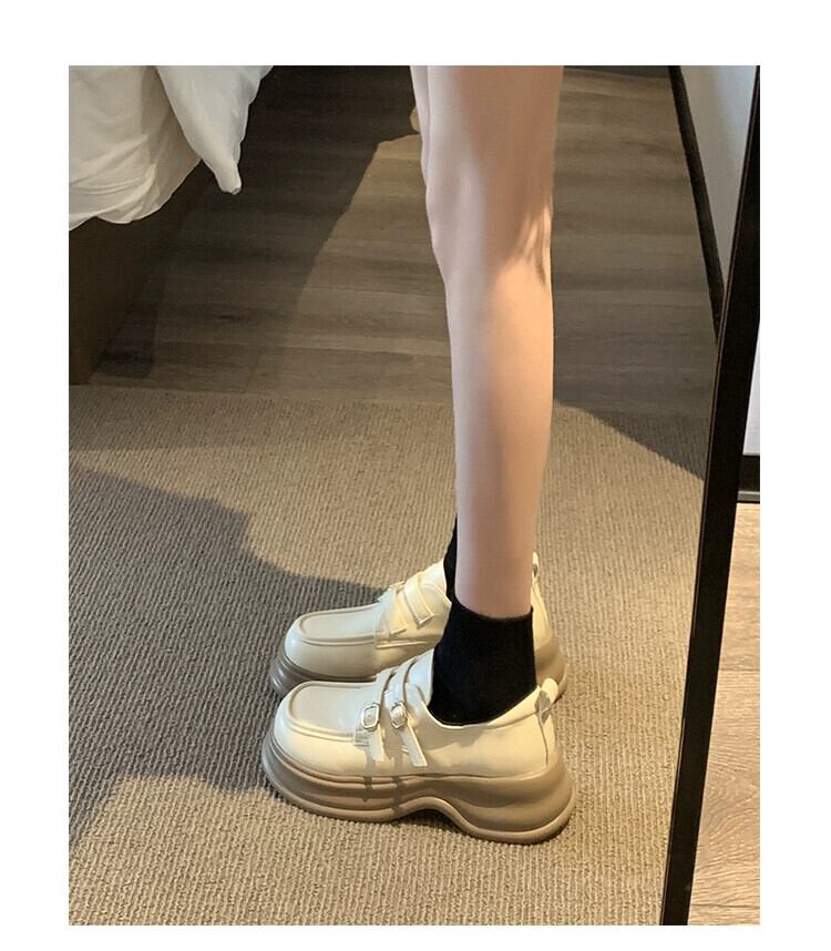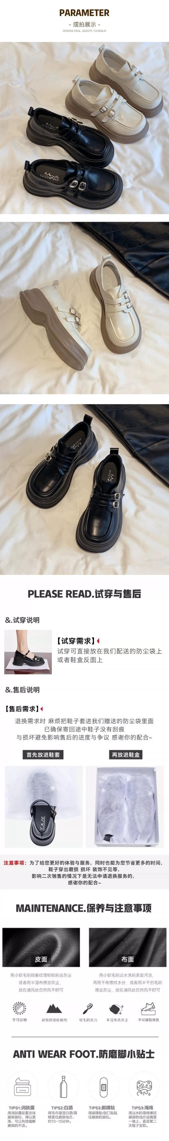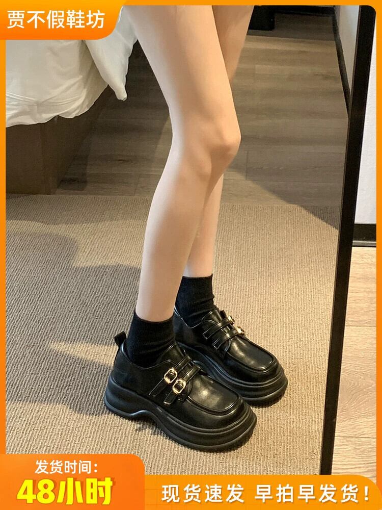 Jia Bujia 厚いヒールローファー女性 2023 夏の新スタイルベルトバックルレトロフレンチカジュアル小さな革靴 シューズ サマー 夏物 レザー ハーネス jxjxf11382778390