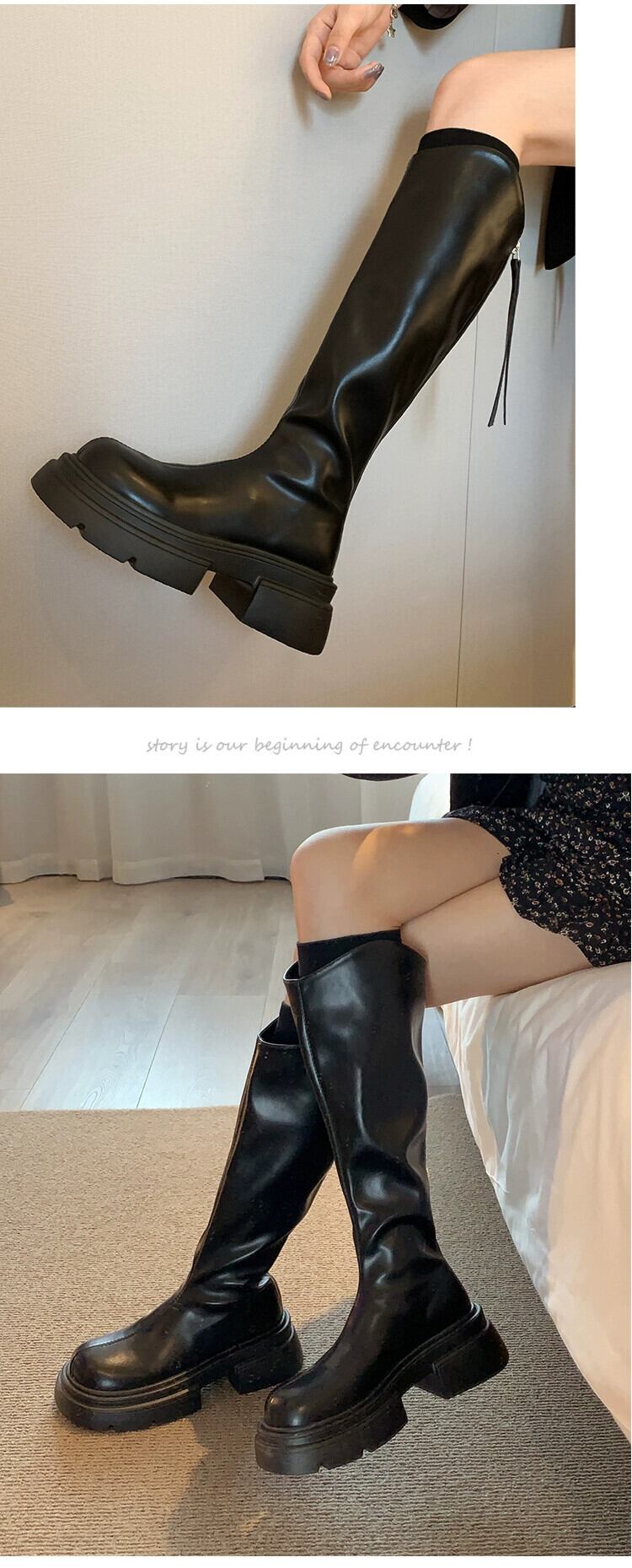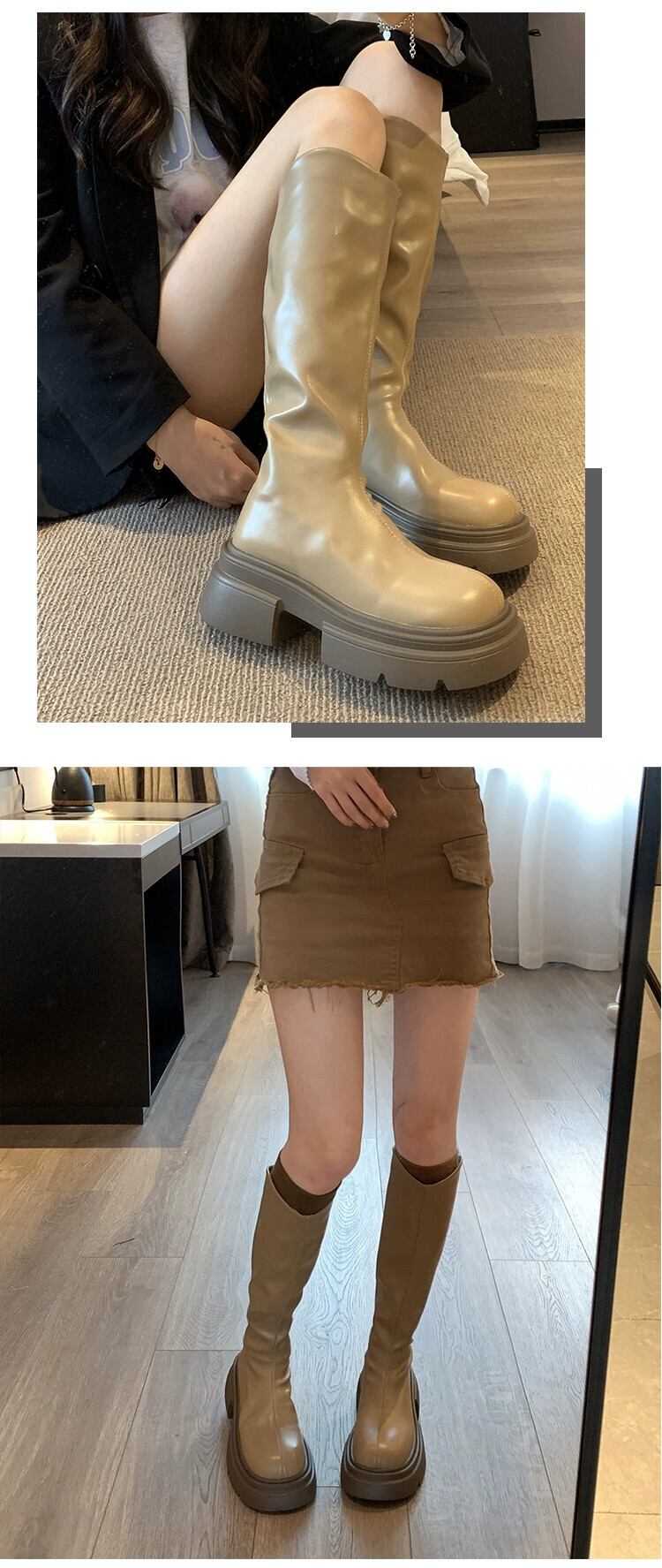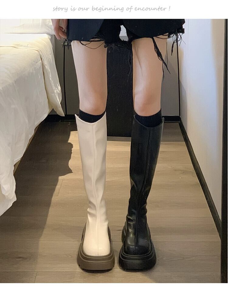 Jia Bufake ブーツの女性 2023 新しい夏のスタイル多用途フレンチレトロアインスタイル厚いヒールナイトブーツトレンド 靴 シューズ サマー 夏物 jxjxf19379286715