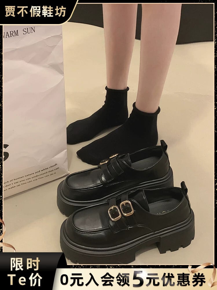 Jia Bujia 厚底シングルシューズの女性 2023 夏の新スタイル軽量気質カジュアルベルトバックル厚底の小さな革靴トレンディな サマー 夏物 レザー ハーネス jxjxf24838248421