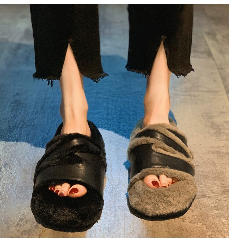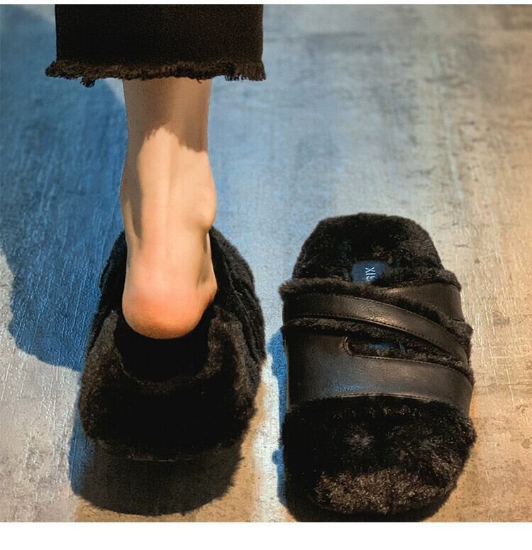 Jia Bujia インターネット有名人スリッパレディースアウター 2023 新しい秋スタイルファッショナブルで多用途なレトロ comtable 厚底ファースリッパ ミュール 靴 シューズ オータム 秋物 jxjxf71722739143