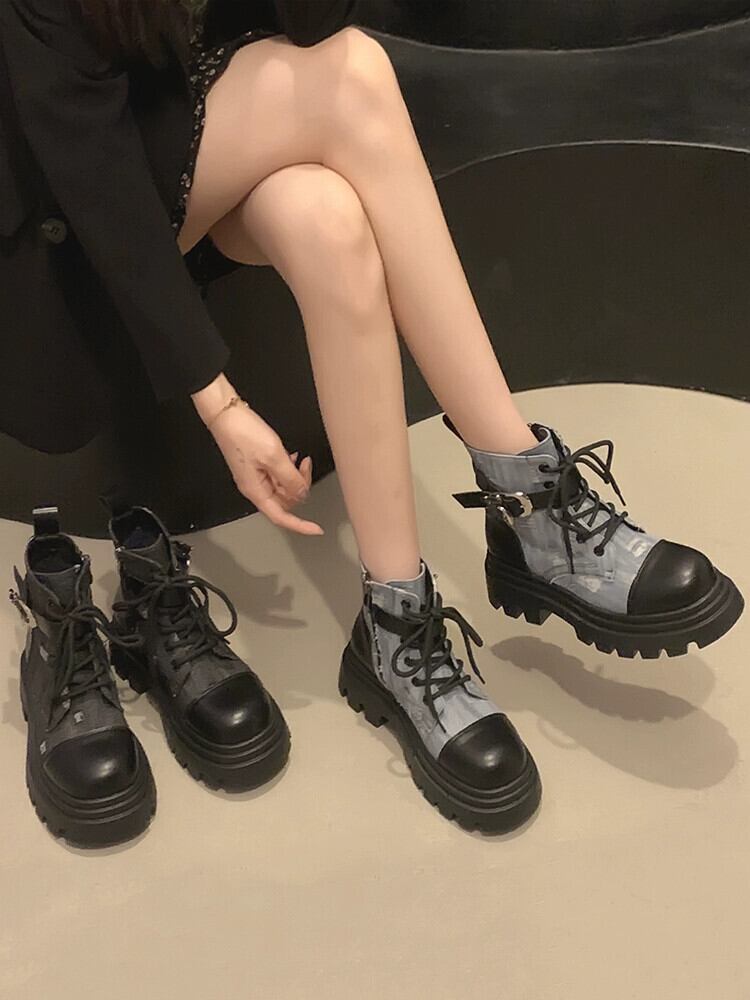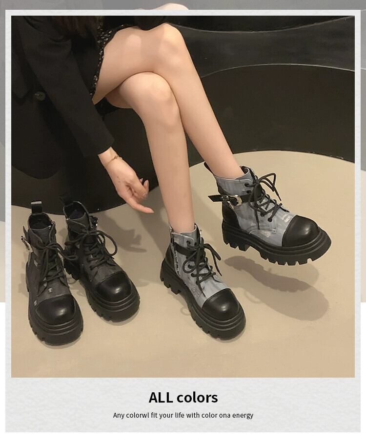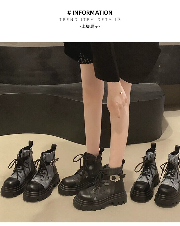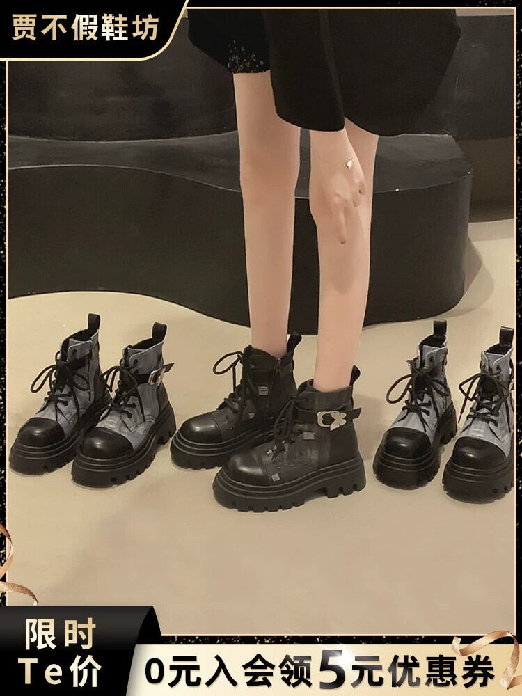 Jia Bujia インターネットセレブショートブーツ女性 2023 夏の新ファッション多用途レトロハンサム厚底ストリートマーティンブーツ 靴 シューズ サマー 夏物 jxjxf36907926124