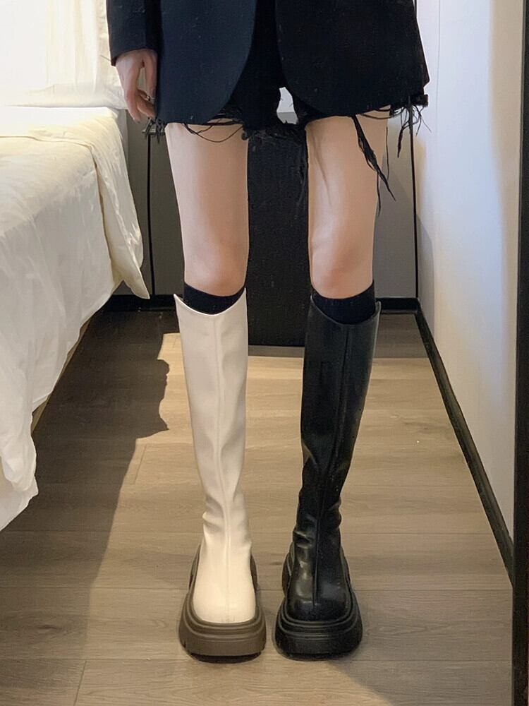 Jia Bufake ロングブーツの女性 2023 夏の新レトロフレンチスタイル太いヒールスリムナイトブーツトレンド 靴 シューズ サマー 夏物 jxjxf65435468924