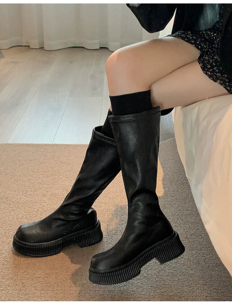Jia Bufake ロングブーツの女性の新しい夏のスタイル 2023 スーパーレトロフレンチスタイルのハイ厚いヒールブーツトレンド 靴 シューズ サマー 夏物 jxjxf98456494201