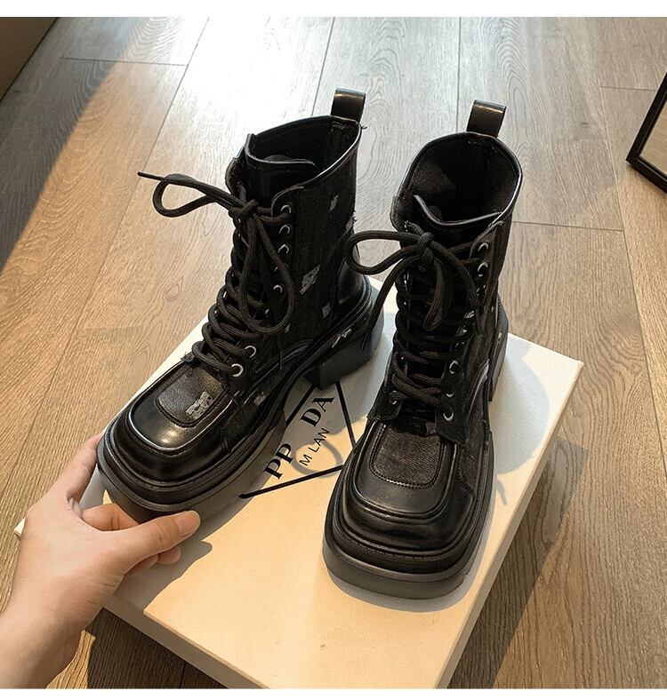 Jia Bufake ショートブーツ レディース 2023 夏スタイル超ホットで多用途なレトロスタイル太いヒールストリートブレイクハンサムマーティンブーツ 靴 シューズ サマー 夏物 jxjxf33566200634