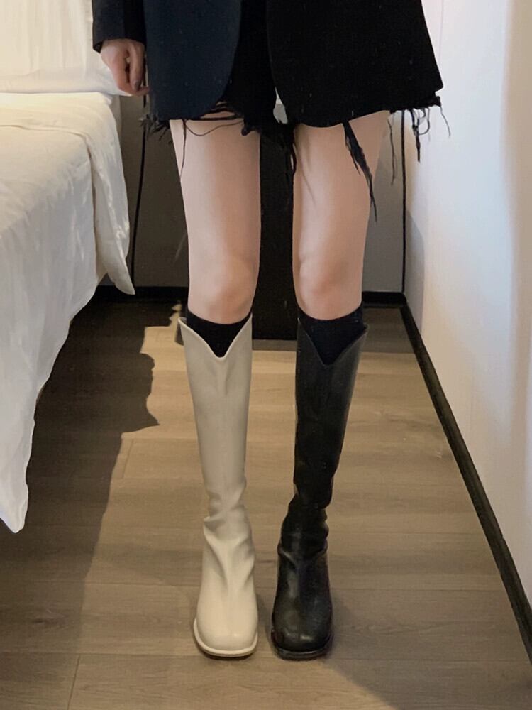 Jia Bufake ロングブーツの女性 2023 夏の新ファッション多用途フレンチレトロスタイルスリムブーツトレンド 靴 シューズ サマー 夏物 jxjxf64832210137