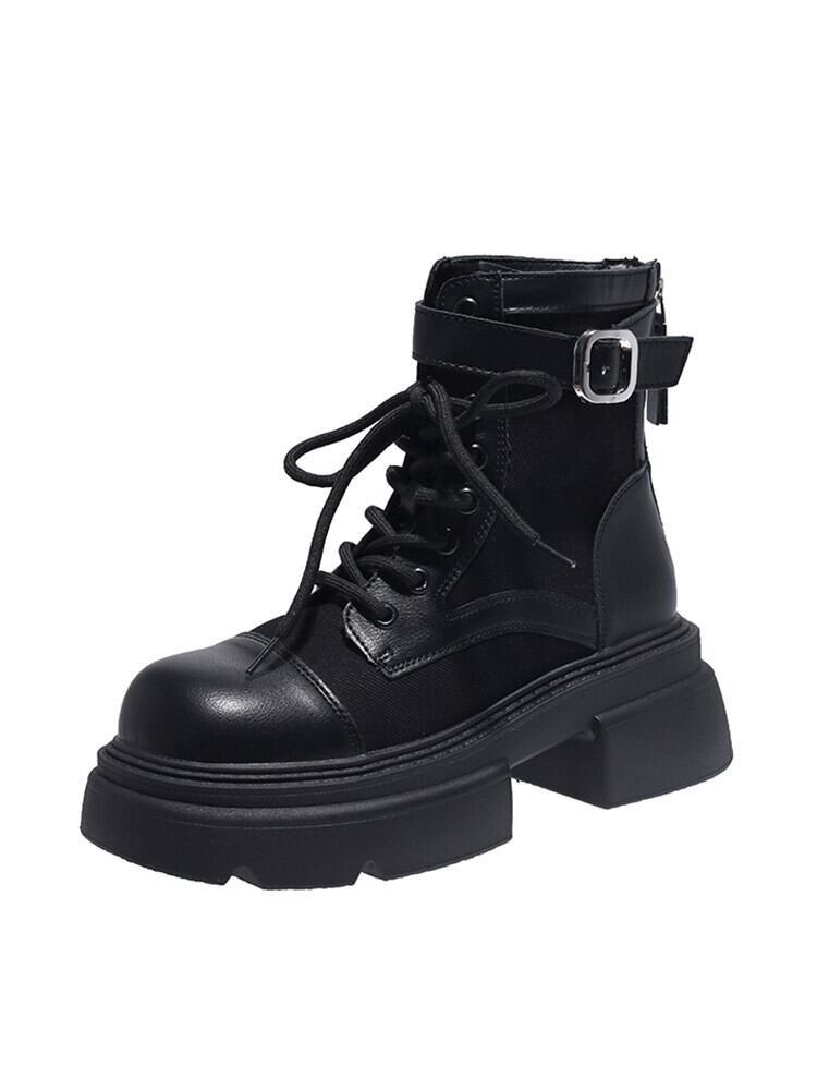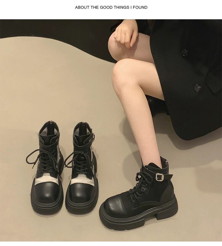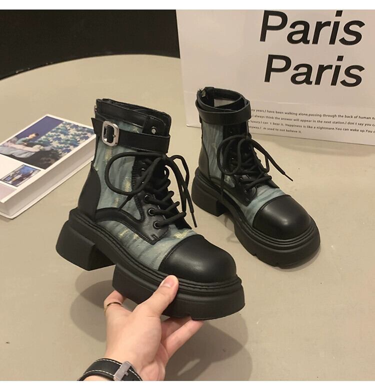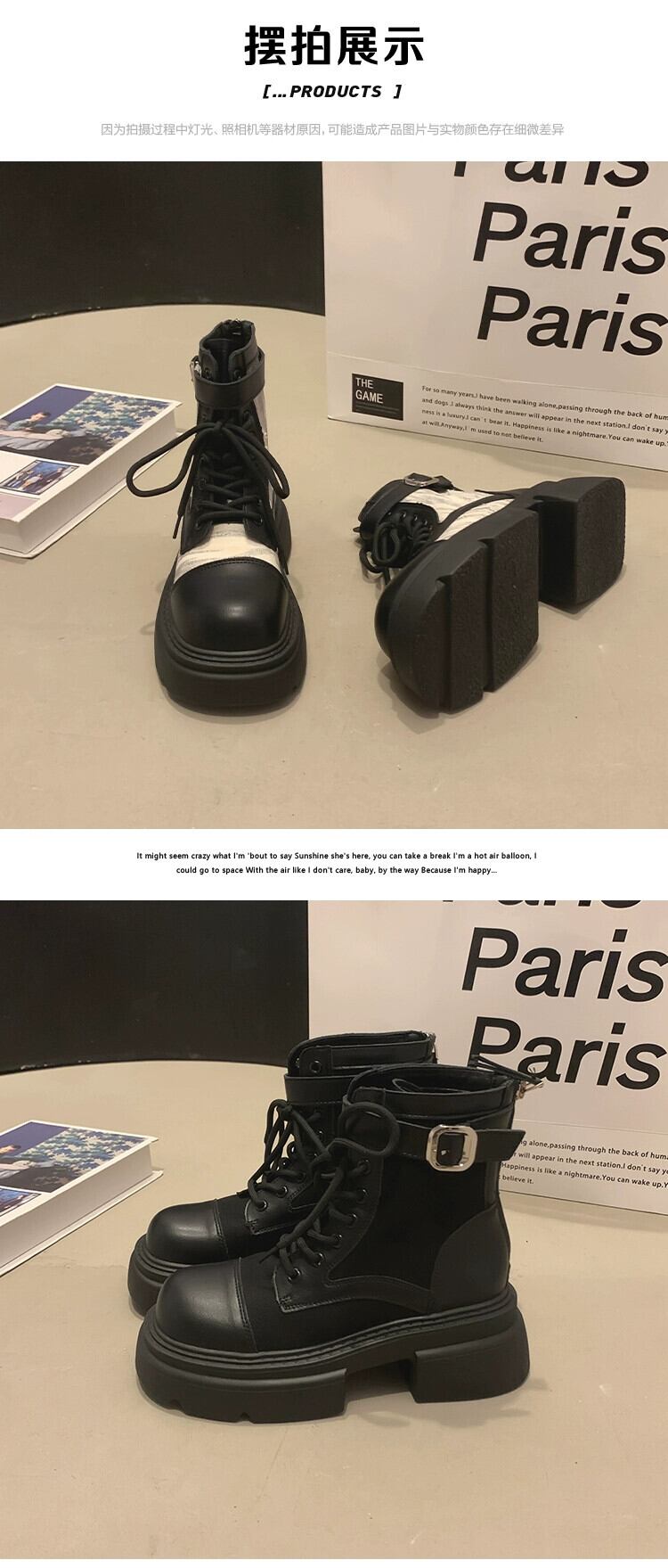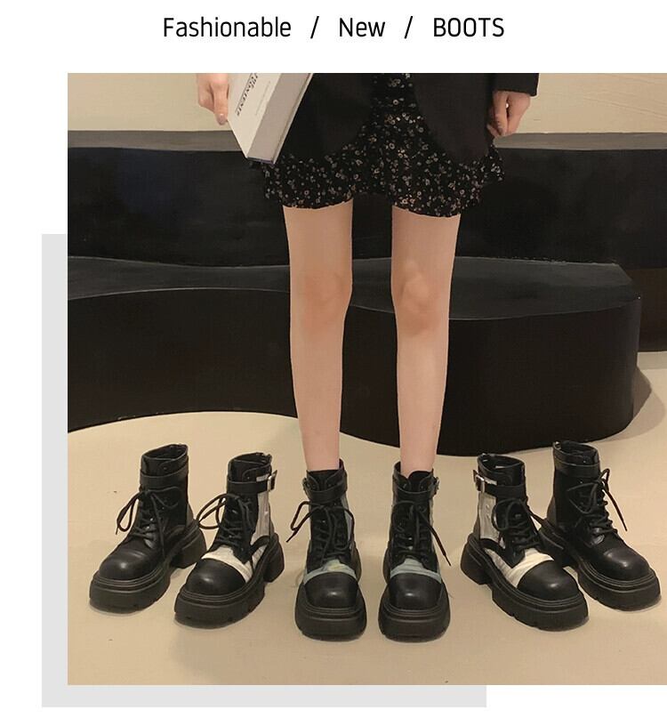 Jia Bufake マーティンブーツ女性の 2023 新しい夏レトロ多用途ベルトバックルハンサムオートバイ厚底ショートブーツ 靴 シューズ サマー 夏物 ハーネス jxjxf55988535749