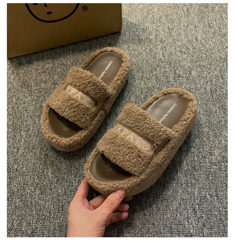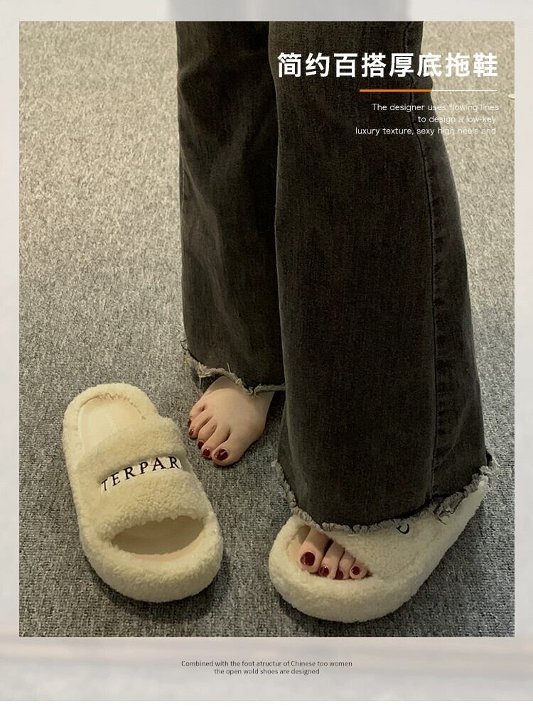 Jia Bujia のアウタースリッパ女性 2023 秋の新ファッション多用途レトロ comtable 厚底 eign スタイルの毛皮のようなスリッパ ミュール 靴 シューズ オータム 秋物 jxjxf77013316042