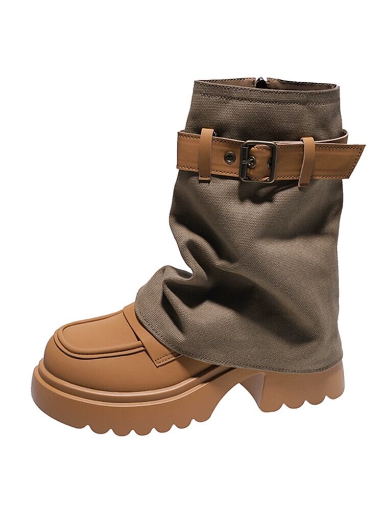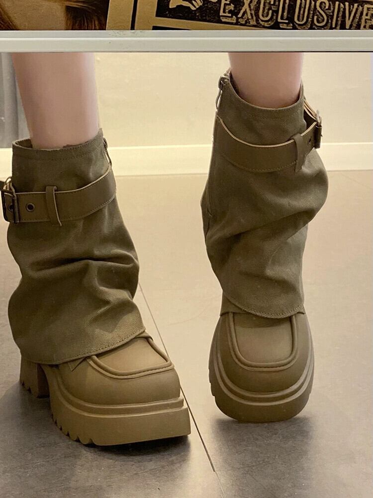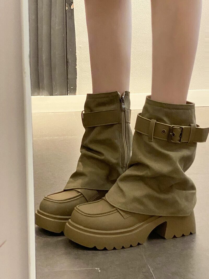 Jia Bufake ショートブーツ女性 2023 秋の新スタイル万能レトロスタイルベルトバックル厚いヒールハンサムなズボンブーツトレンド 靴 シューズ オータム 秋物 ハーネス jxjxf35639581821
