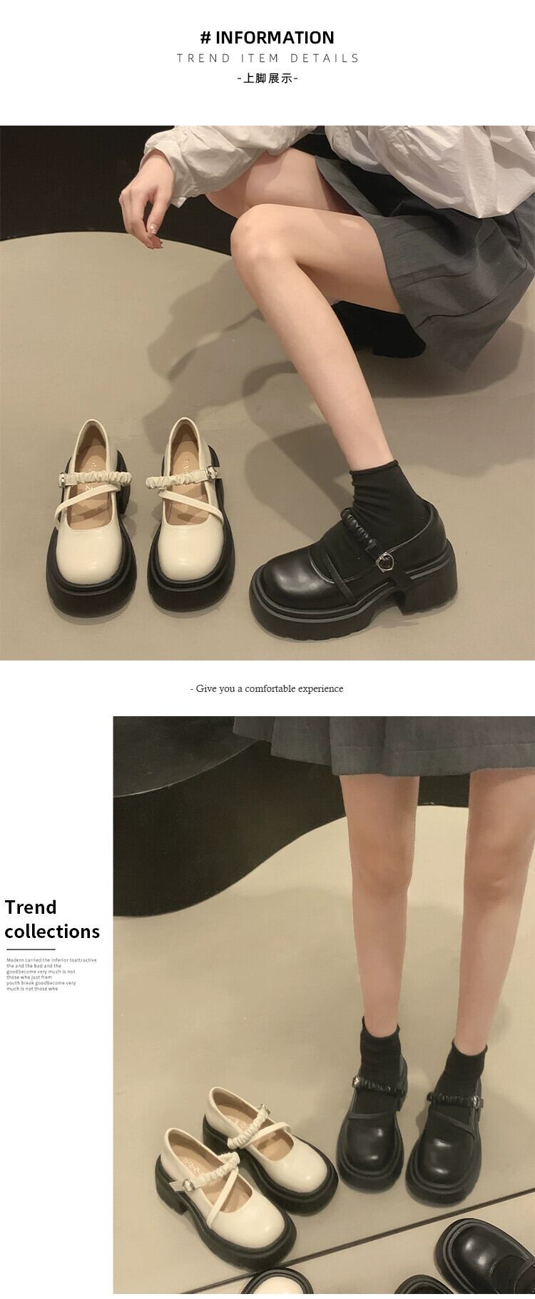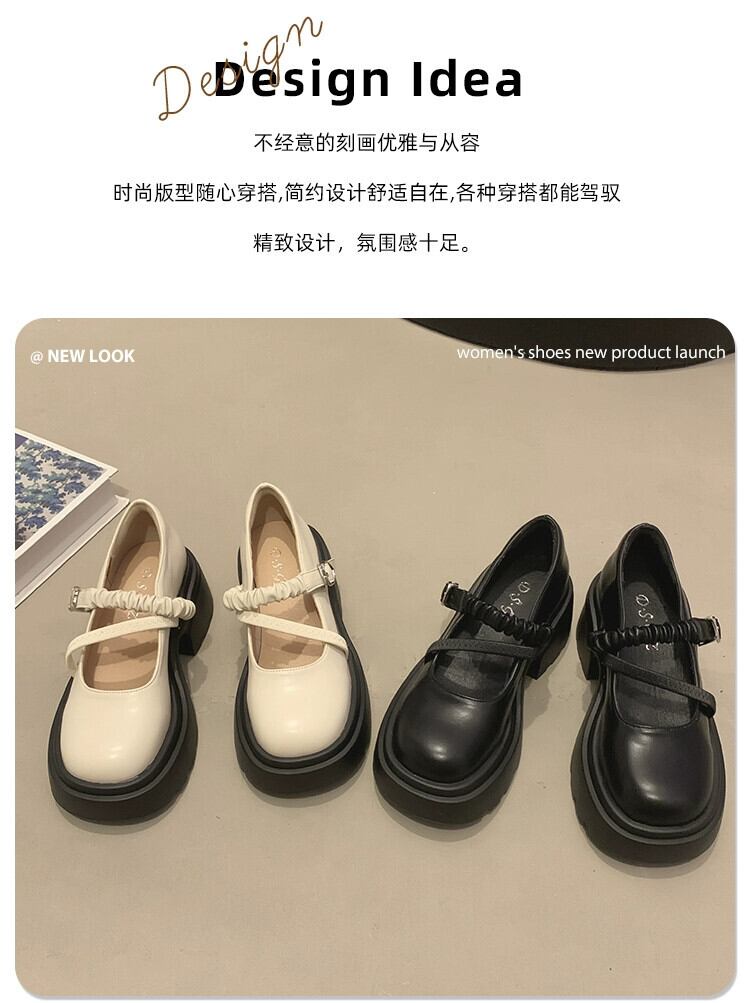 Jia Bujia レディース太いヒールメリージェーンシューズ 2023 秋の気質フランスの優しいレトロな小さな革靴トレンド オータム 秋物 レザー jxjxf20684014587