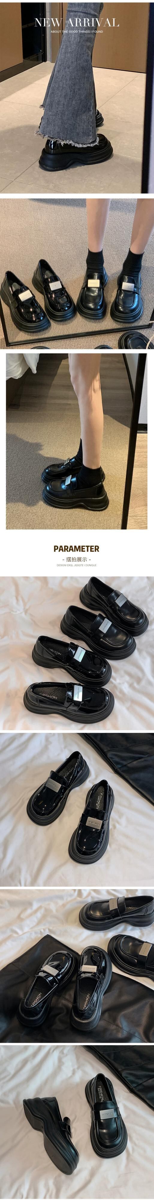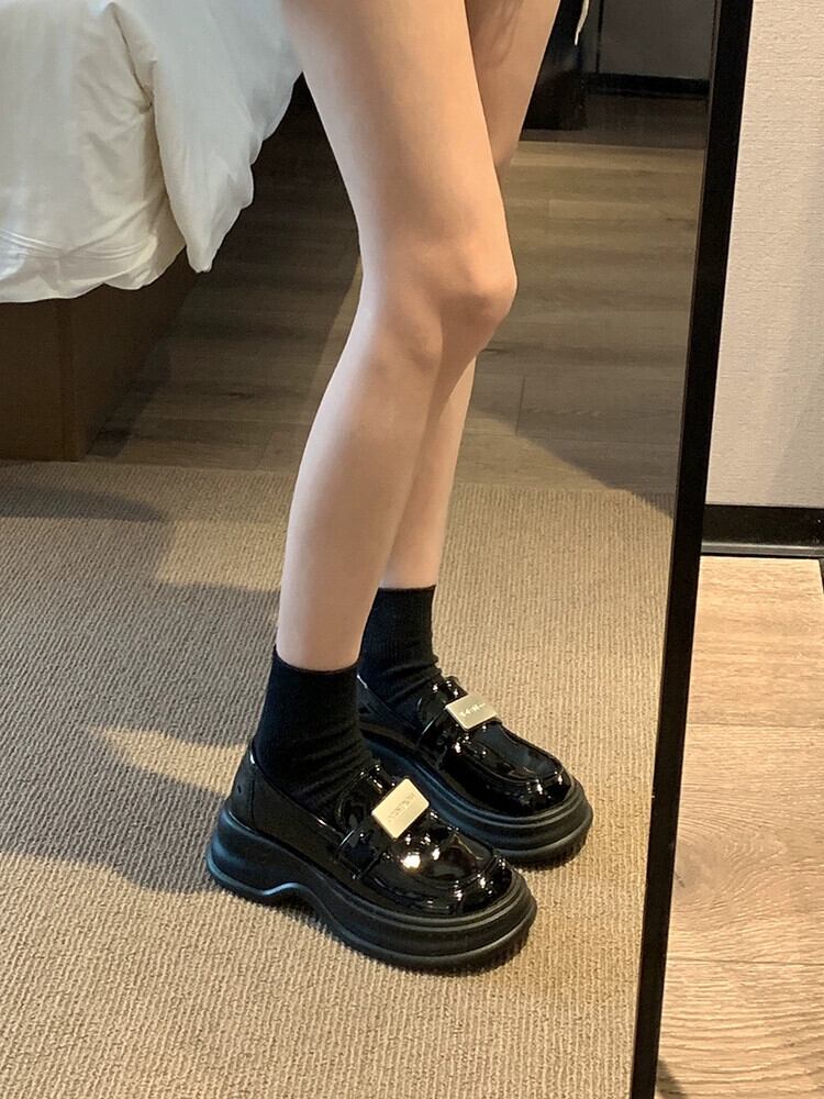 Jia Bufake シングルシューズの女性 2023 秋の新スーパーファッションレトロメタル厚底 comtable 通勤小さな革靴 オータム 秋物 レザー jxjxf31268192299