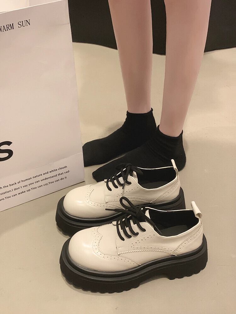Jia Bufake シングルシューズの女性の秋 2023 新しいファッション多用途レトロなスタイル厚いヒール英国スタイルの小さな革靴トレンド オータム 秋物 レザー jxjxf40044545307